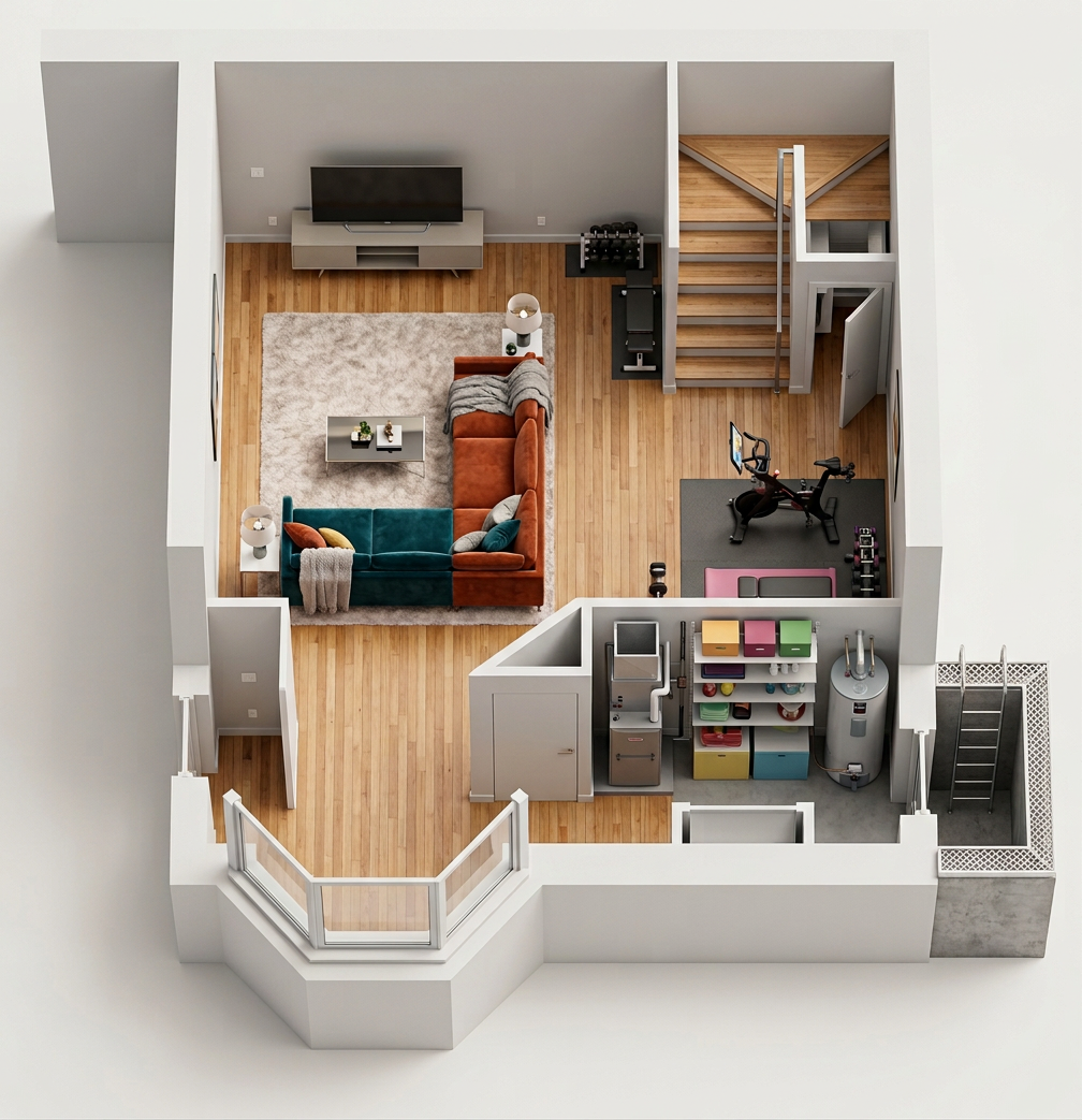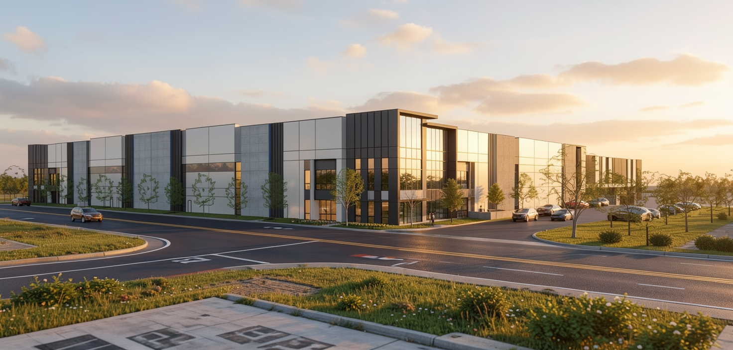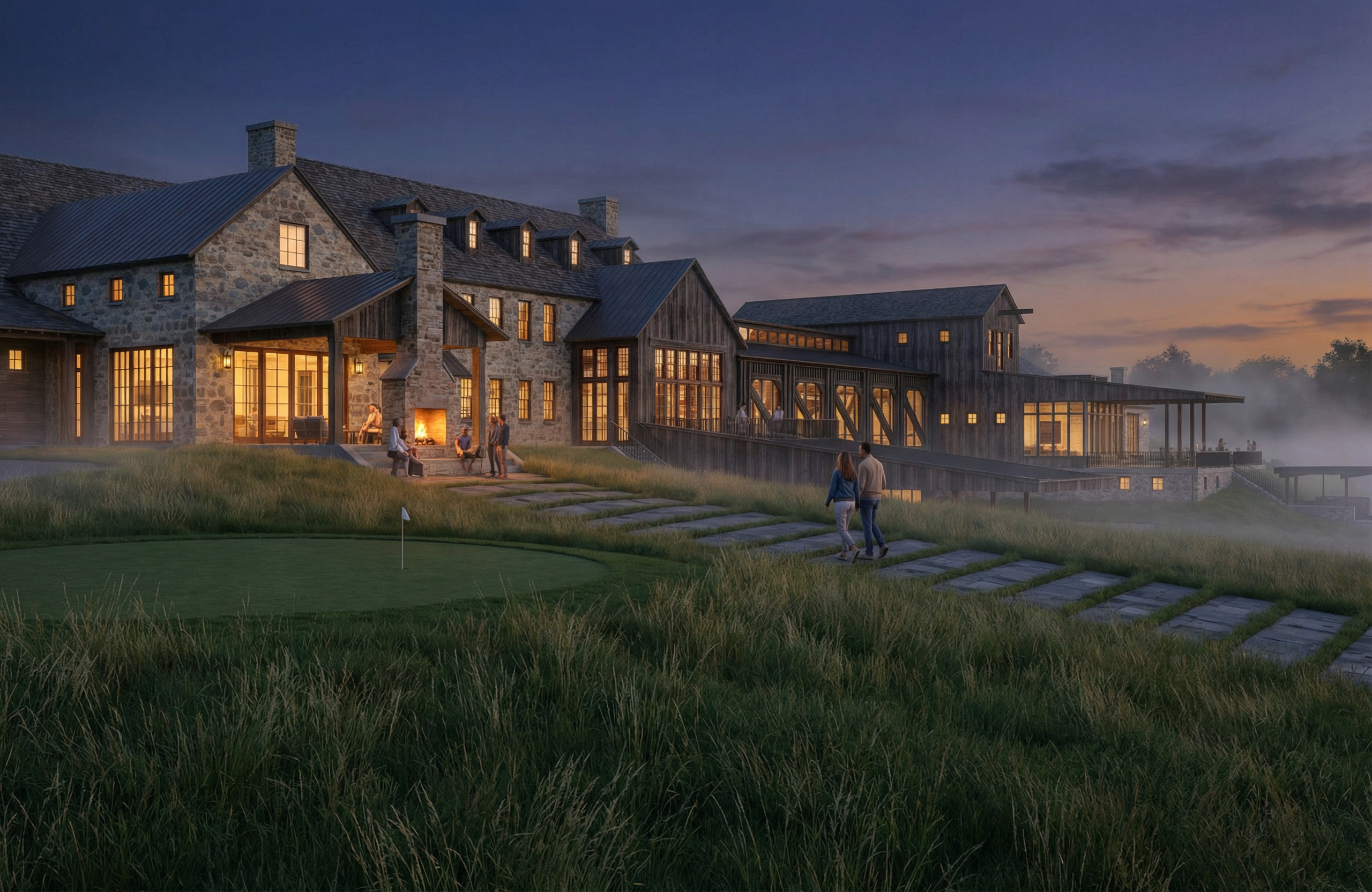 a modern exhibition hall with soft dark lighting featuring a ceiling illuminated by glowing yellow neon lights smooth dark grey concrete replace yellow rectangle near the front with soft glowing light box have a person looking at the box woman business female presenter on stage with microphone audiences with glowing blue headphones blurred business woman and men with yellow lanyard passing by