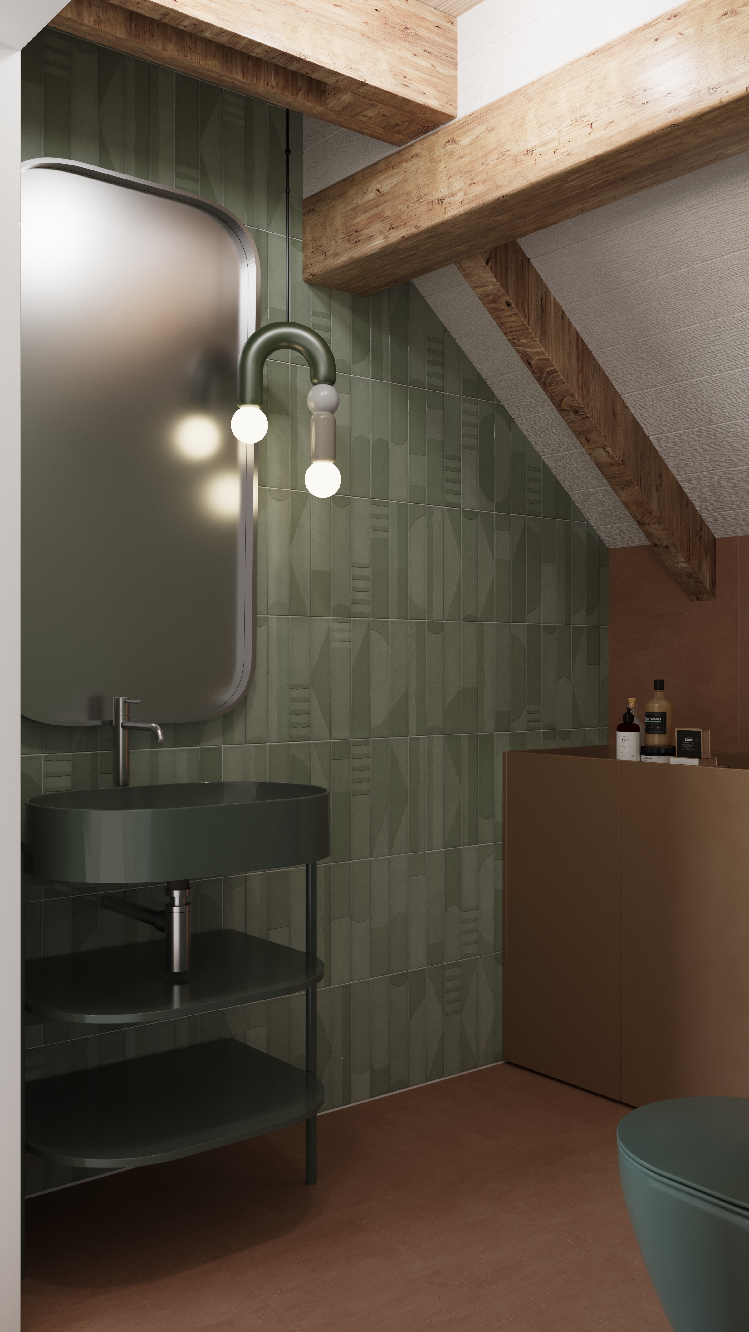 exterior shot change the tiles textures and realism of the visualization using a mood board as a guide don t change the bathroom layout don t change the position of appliances such as the sink or toilet don t change the attic slope improve the quality of the visualization and textures