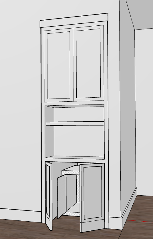 make this look like a hallway cabinet with a dog crate at the bottom