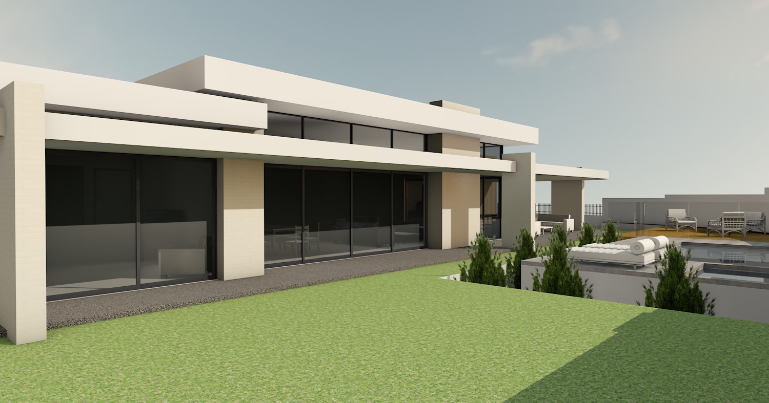 sunny afternoon surrounding trees white stone cladding on piers in background