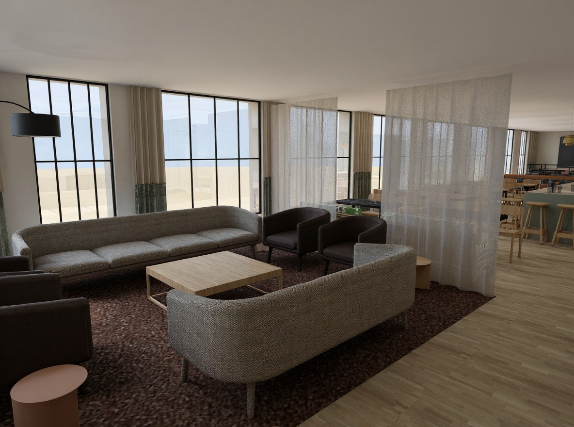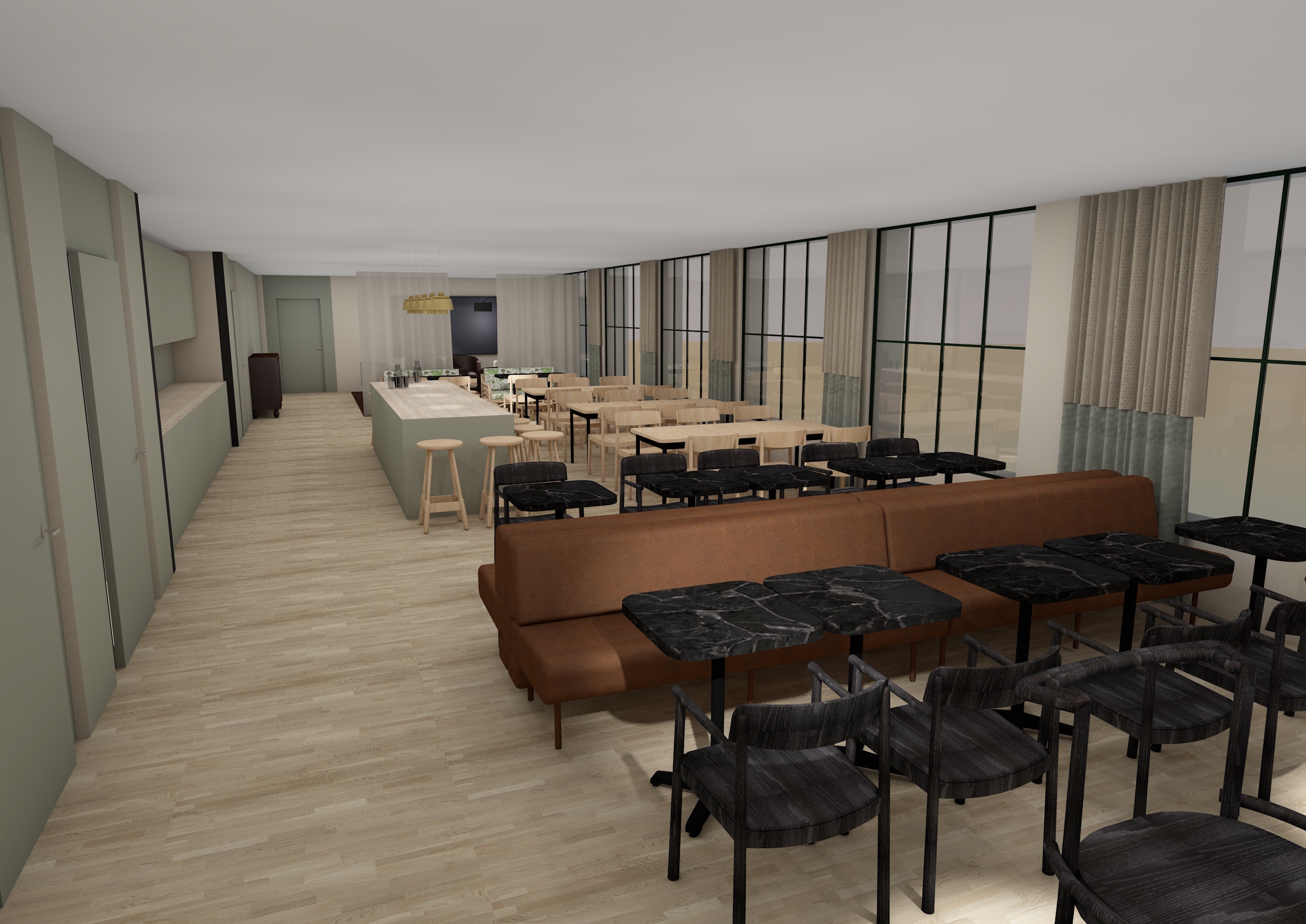 make this photo realistic make it a bit brighter please and with a coffe machine in the kitchen