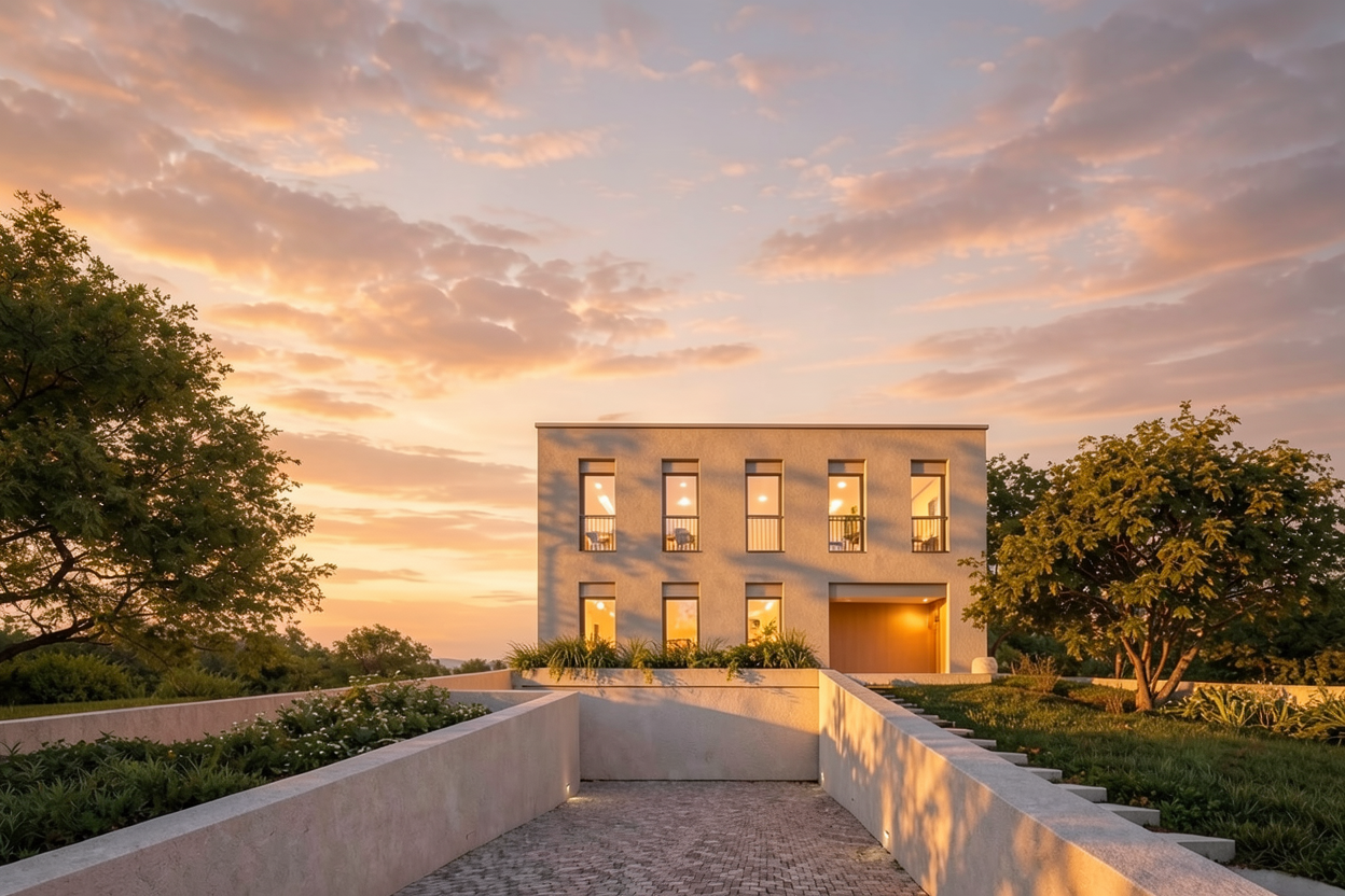 lot of light and reflects in the windows in the zagreb podsljeme croatia region with perfect grass in garden all garden