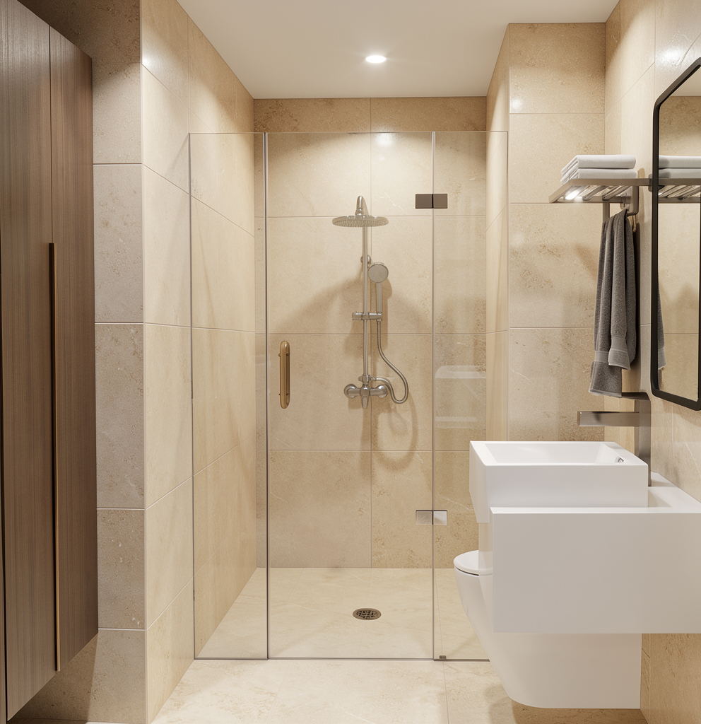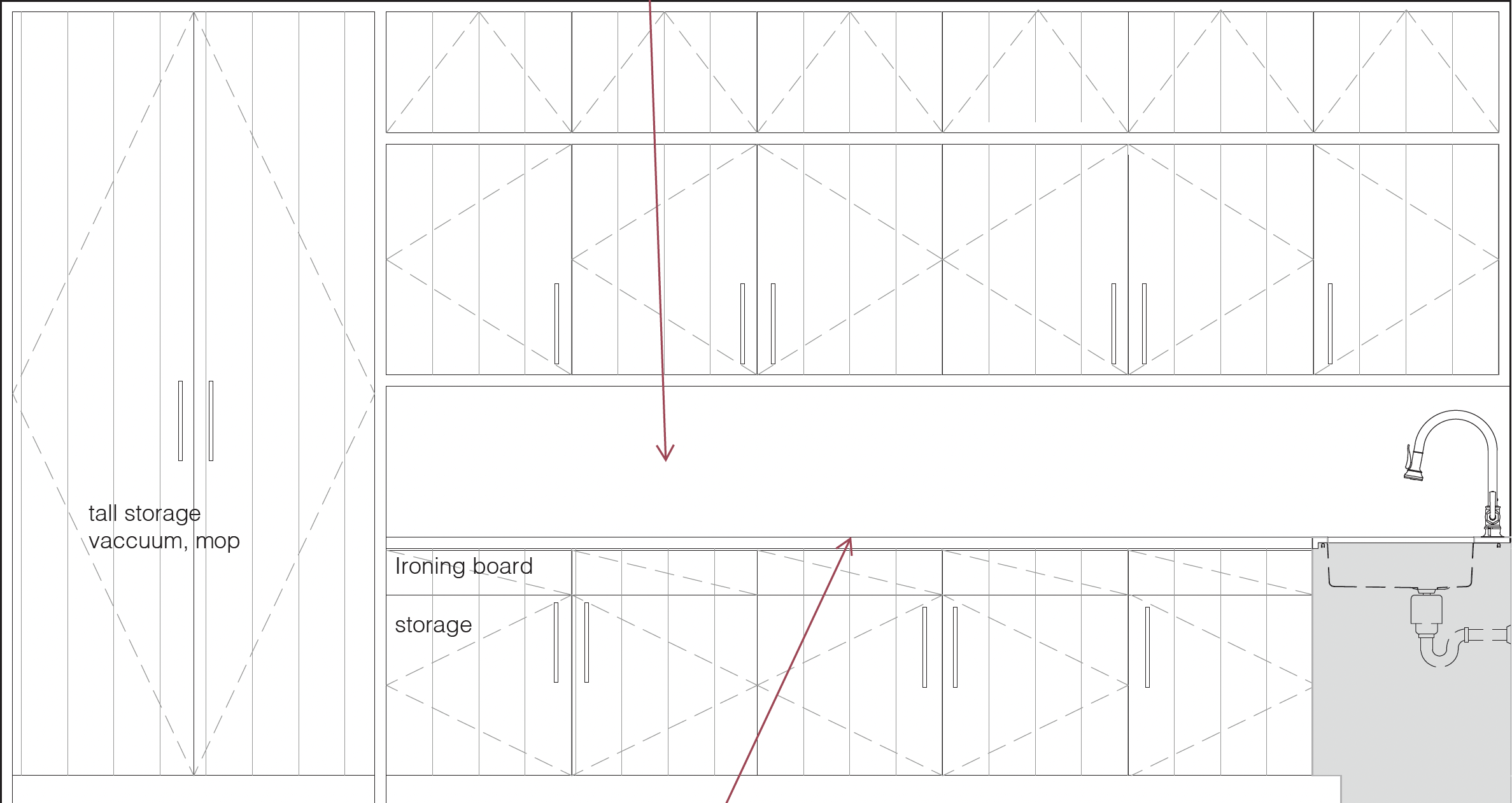 white oak millwork chrome hardware forest green backsplash black countertop slab with grey veining 2d result