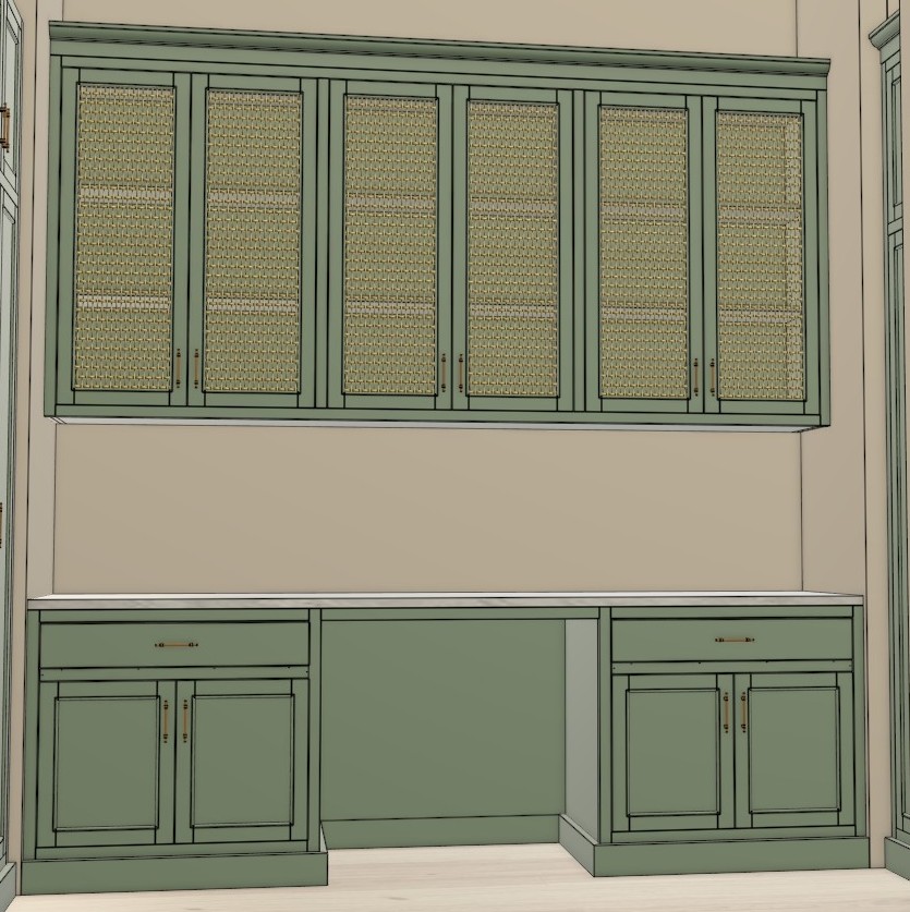 this is a desk office are the cabinets are farrow and ball breakfast room green the uppers have a brass mesh