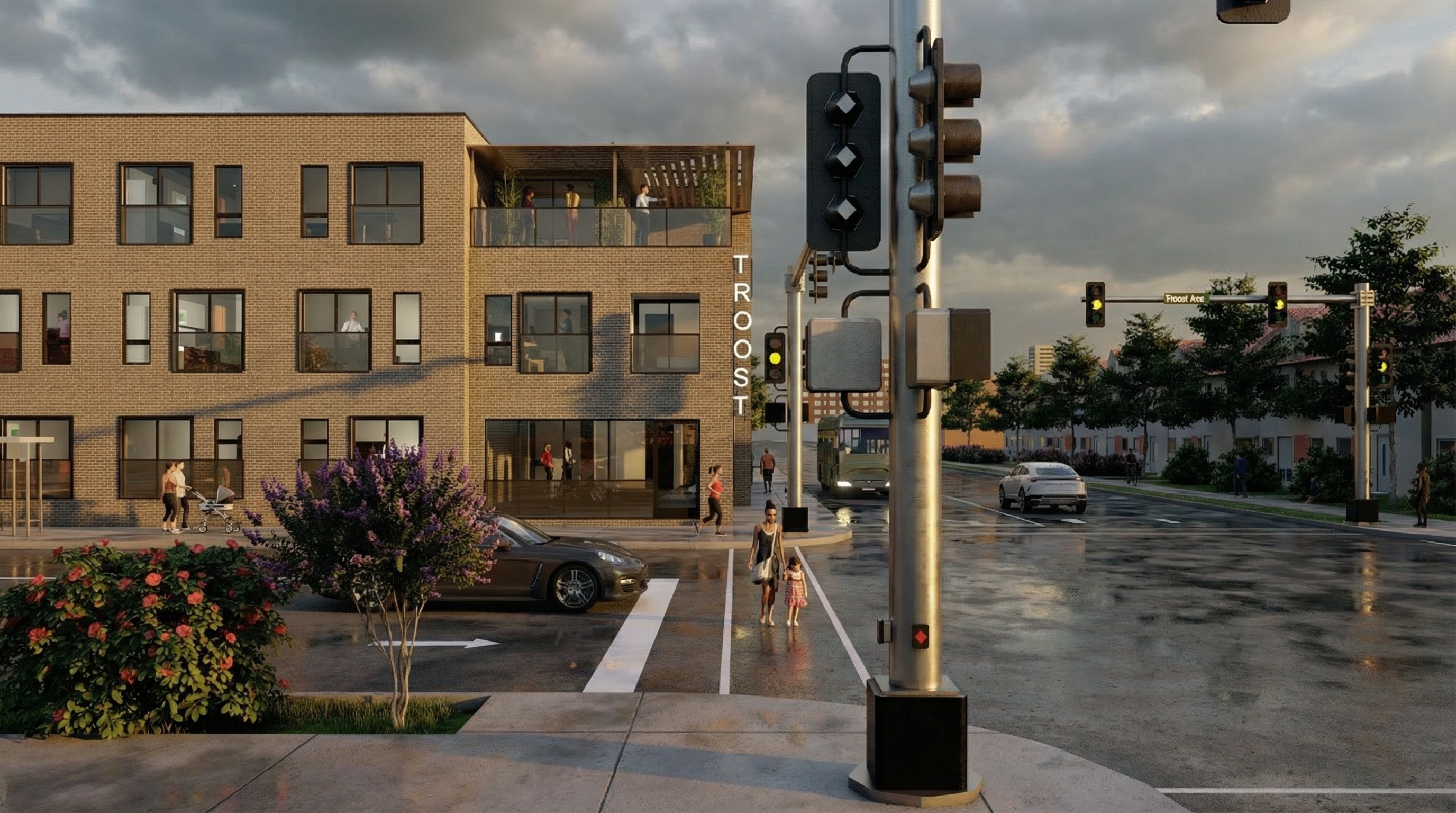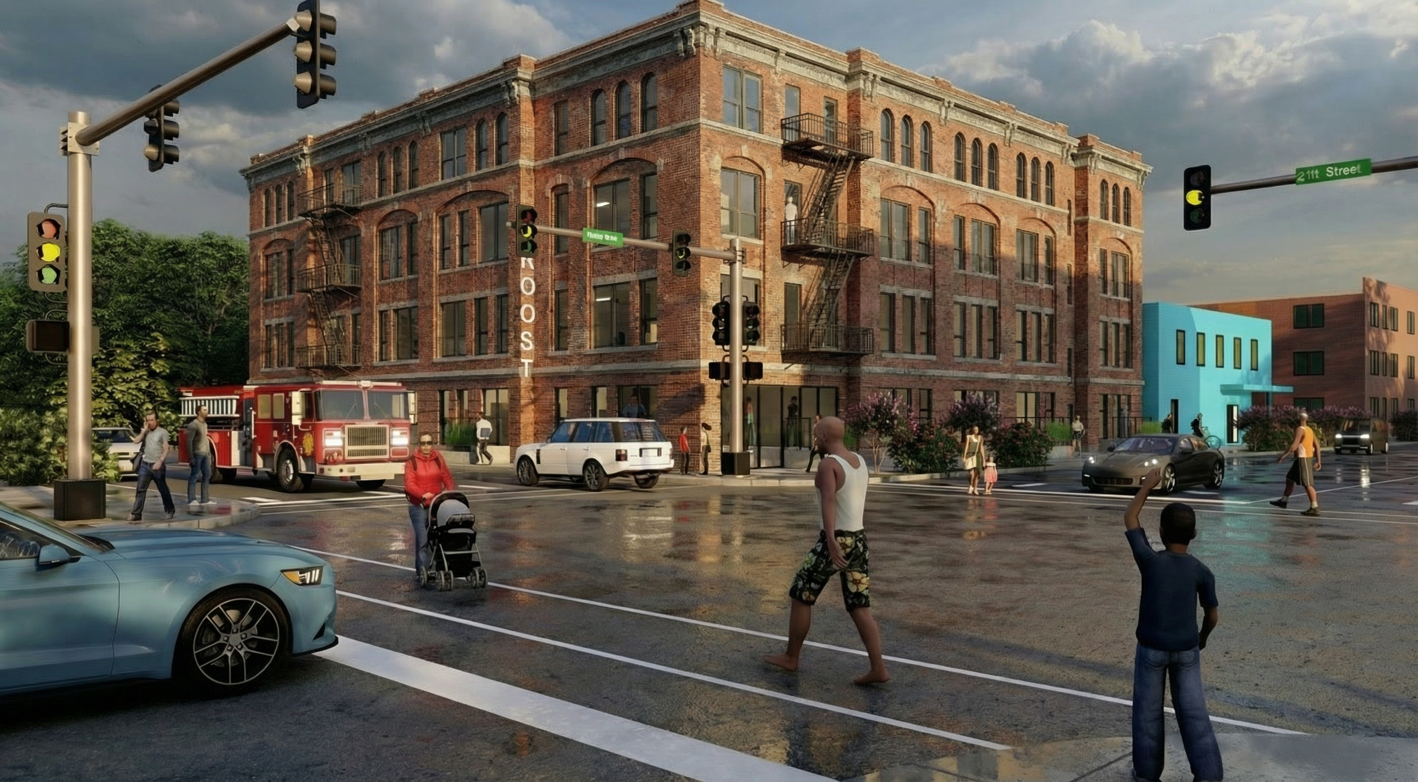 make this a historic kansas city brick building with large arches