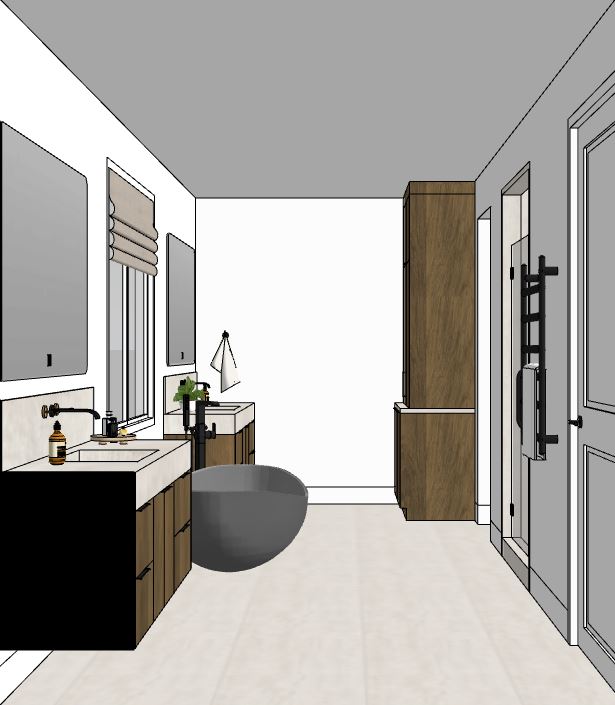 can you make the walls white the mirrors backlit the countertops white marble and the floor tile light grey