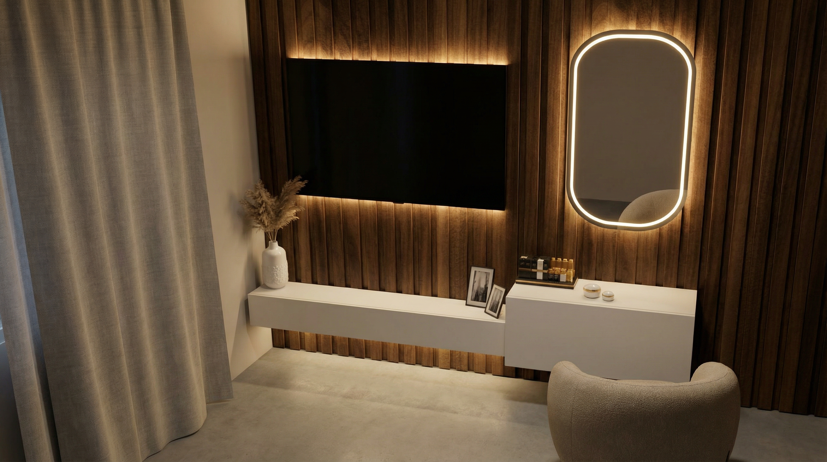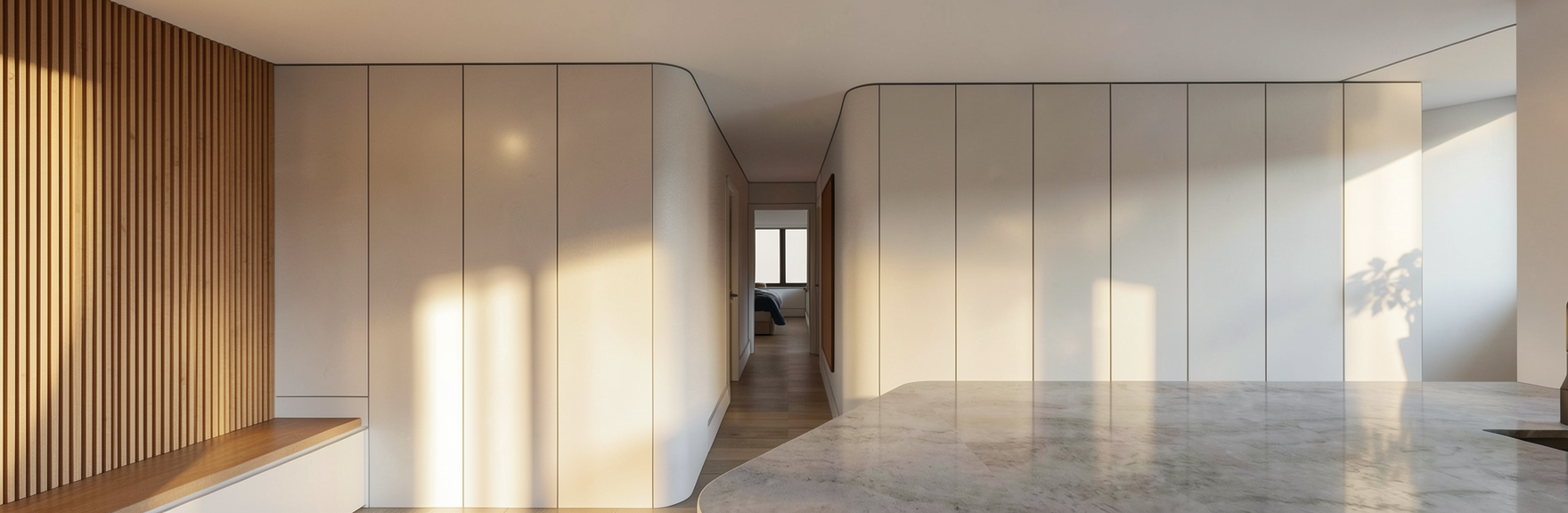 ultra realistic interior render in japandi minimal style based strictly on the provided sketchup geometry do not add remove or modify architectural elements preserve the exact layout openings and structure lighting soft natural daylight entering only from existing openings in the model do not create or add any new windows or light sources subtle diffused light with realistic shadows and gentle light bounce materials warm neutral palette with light oak wood linen fabrics textured plaster walls matte finishes and subtle concrete clean minimal uncluttered styling furniture low profile japandi style simple forms minimal decoration balanced composition camera eye level perspective 35mm lens photorealistic textures global illumination ray tracing soft depth of field mood calm airy refined minimalism quiet luxury natural and serene atmosphere