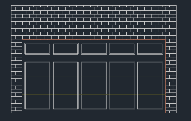 make a photorealistic image exterior shot of a garage door in natural oak wood as per drawings the sides of the building have brick architecture