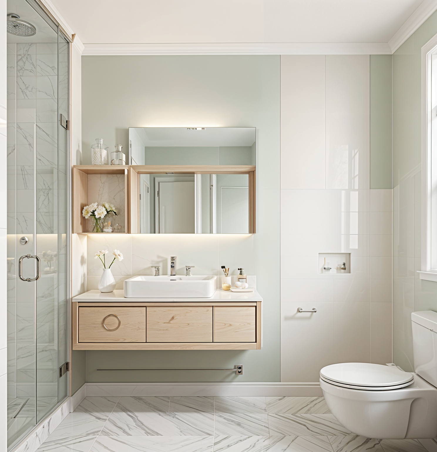 a modern two story farmhouse with white vertical board and batten siding black standing seam metal roofing exposed wooden truss details on the rear gable and natural timber posts supporting the full length covered patio retain the exact structure window arrangement patio columns balcony chimney rooflines foundation height and proportions exactly as shown in the reference image add a smooth concrete front driveway extending toward the house integrated naturally into the sloped terrain surround the property with a lush dense forest of tall mixed evergreens and hardwoods place the sun behind the trees so warm golden sunlight beams through the branches casting soft rays and subtle dappled highlights across the patio siding and grass create ultra realistic lighting crisp shadows detailed textures in the wood siding and glass reflections and a vibrant clear sky with light atmospheric depth render in hyper realistic architectural visualization quality 8k resolution