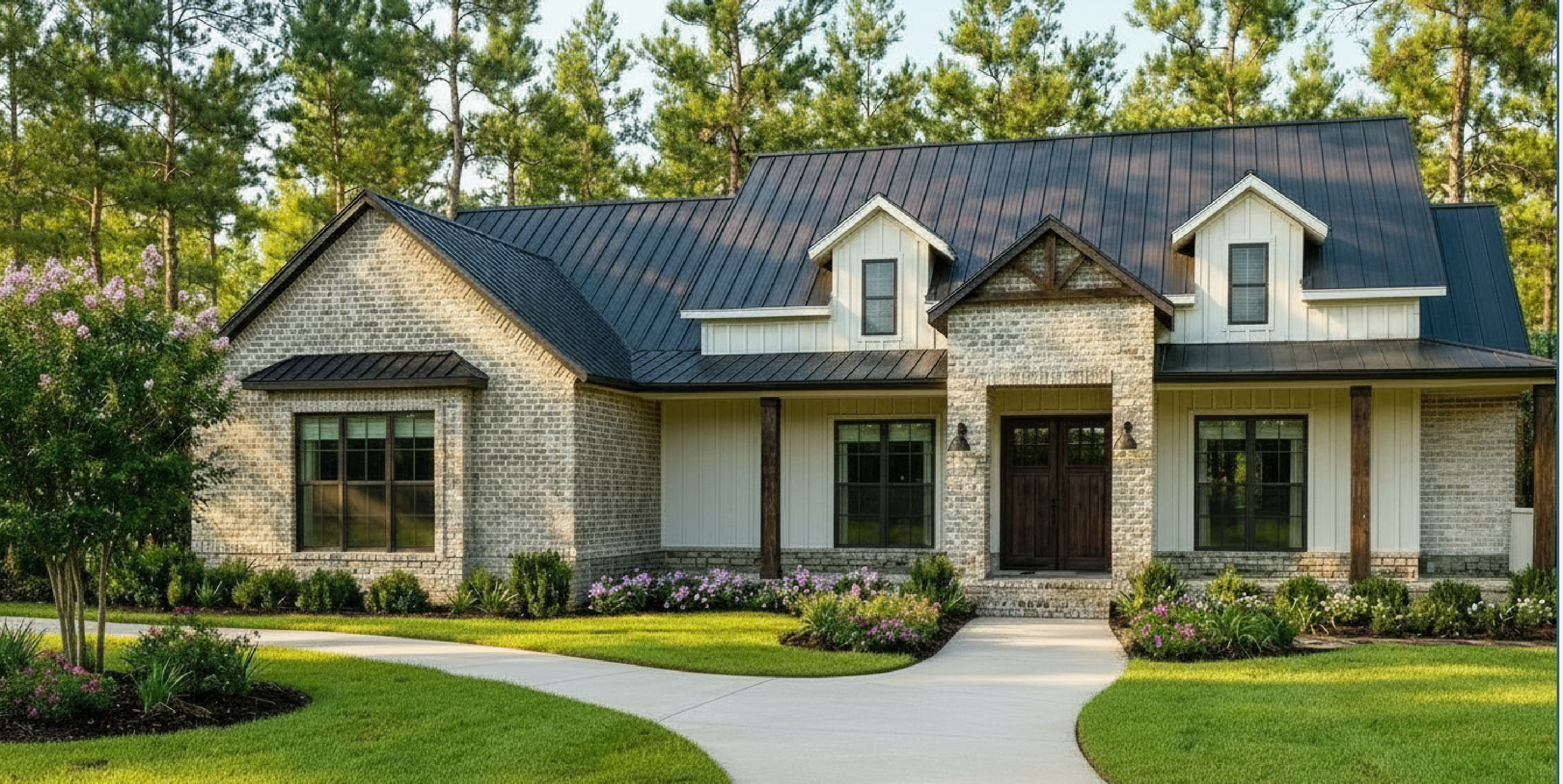 change the tower to an arched entry way and remove the truss from the gable on the entry tower we want a photorealstic image that keeps the same color scheme
