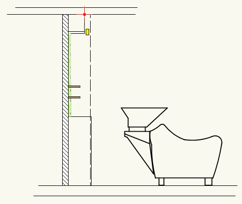 interior shot tis is a side on elevation of the interior hairdressing backwash area we have a side on view of a luxurious salon hairdressing backwash unit with earth brown coloured upholstered chair withe ceramic basin the left hand side of teh elevation shows a recessed salon shampoo dispensary cut into a wall recess with base cabinets in a mushroom brown luxurious gold cabinet handles above the base units in the wall recess is 2 product shelves with the wall backed in mosaic fern green ceramic tiles the top of the recess has led hidden strip lighting illuminating the product shelves the floor will be an oak effect vinyl floor keep the scale the render needs to be side on to scale to help the salon owner visulise the recess effect lighting as in an everyday working salon bright effective please place a hairdresser between the dispensary backwash washing a client who you need to add into the salon backwash chair this is for a uk salon so ensure all references are taken from uk market place