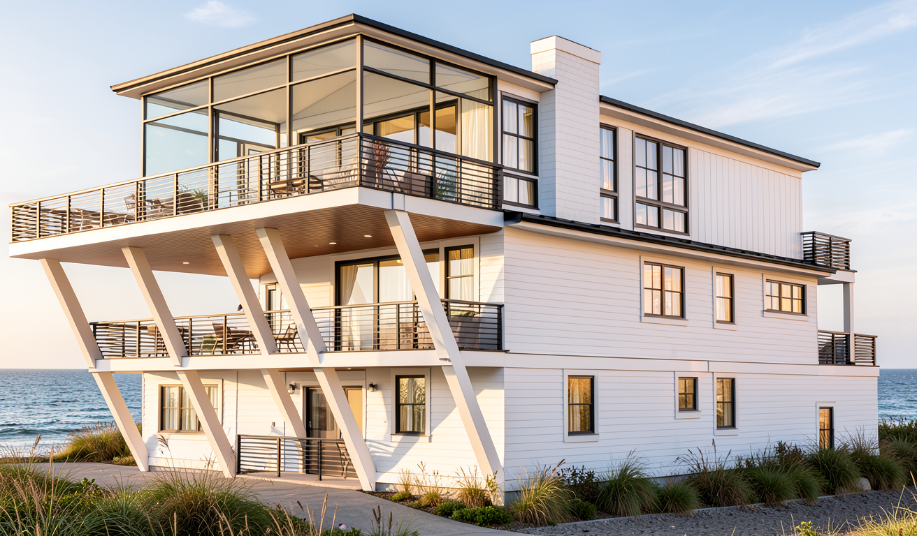 make the brick gray and white washed make the siding and panels white make the siding and panels on the left one fourth of the building black make the trim brown