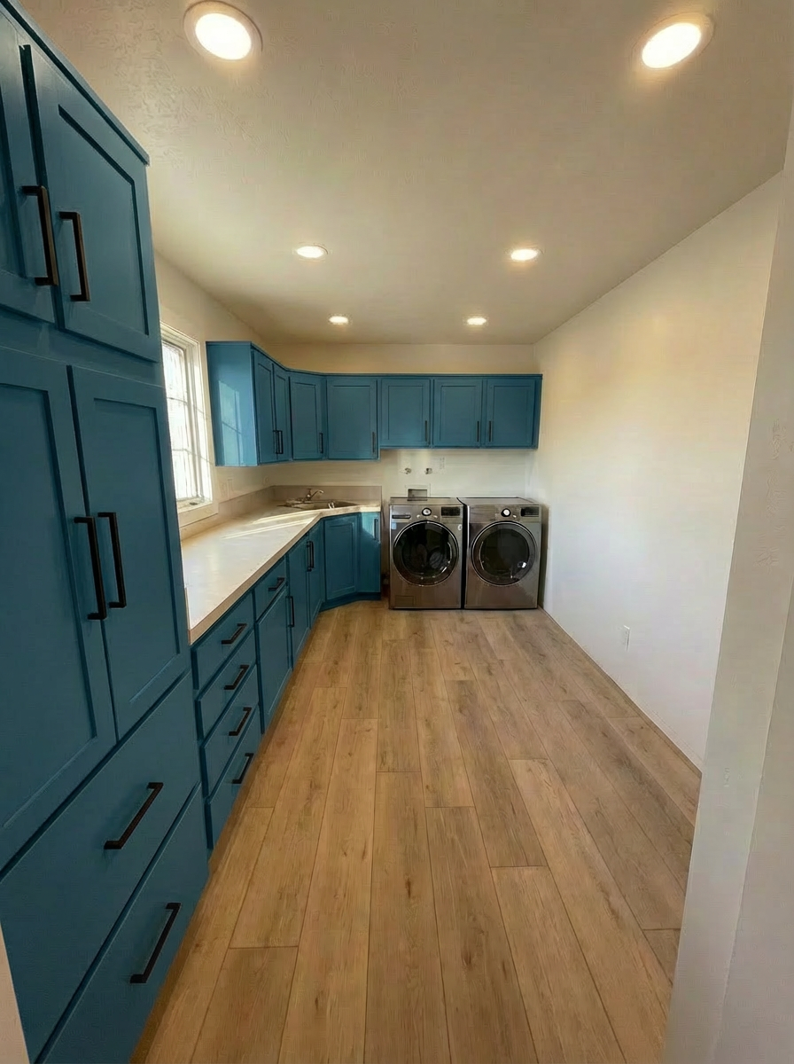 convert this floor plan into a realistic isometric 3d view of a full house show the space from an elevated angle with furniture walls and details visible add a black two doors fridge on the right side of the kitchen use the same furniture as shows on the plan do not change the orientation of the floorplan