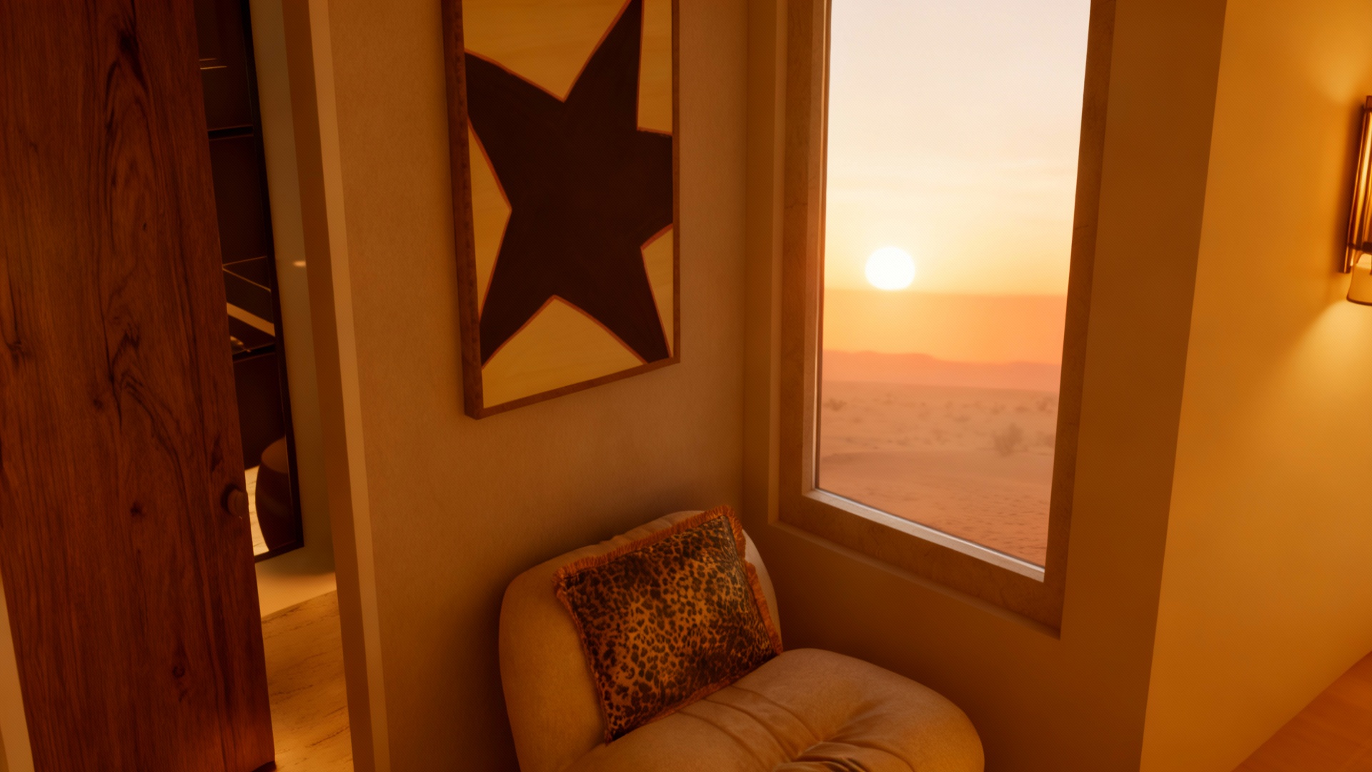 photorealistic kitchen interior based strictly on the provided image preserve all cabinetry stainless steel surfaces appliances island layout stools artwork shelf items colors proportions and camera angle exactly as shown do not redesign replace or stylize any element lighting realism primary focus soft natural daylight filling the space evenly warm accent light interacting naturally with the orange leather stools and pendant fixtures realistic light falloff and gentle shadow gradients no harsh contrast no bloom no overexposure stainless steel metal true brushed stainless steel appearance subtle directional grain soft reflections with slight distortion no mirror like gloss no plastic shine leather stools natural leather texture with soft creasing warm color absorption matte to satin finish not glossy cabinetry surfaces light wood with subtle grain variation smooth matte cabinetry finish clean but realistic edge softness camera exposure 35mm lens equivalent balanced white point natural interior photography exposure final result must look like a real professionally photographed residential kitchen calm warm and believable not cgi not stylized not cinematic stainless steel surfaces appear clean and polished with soft controlled reflections finish is shiny stainless steel not chrome and not mirror like reflections are slightly blurred with realistic light falloff and perspective distortion subtle directional grain remains visible in the metal highlights are crisp but restrained with no bloom no glow and no plastic sheen