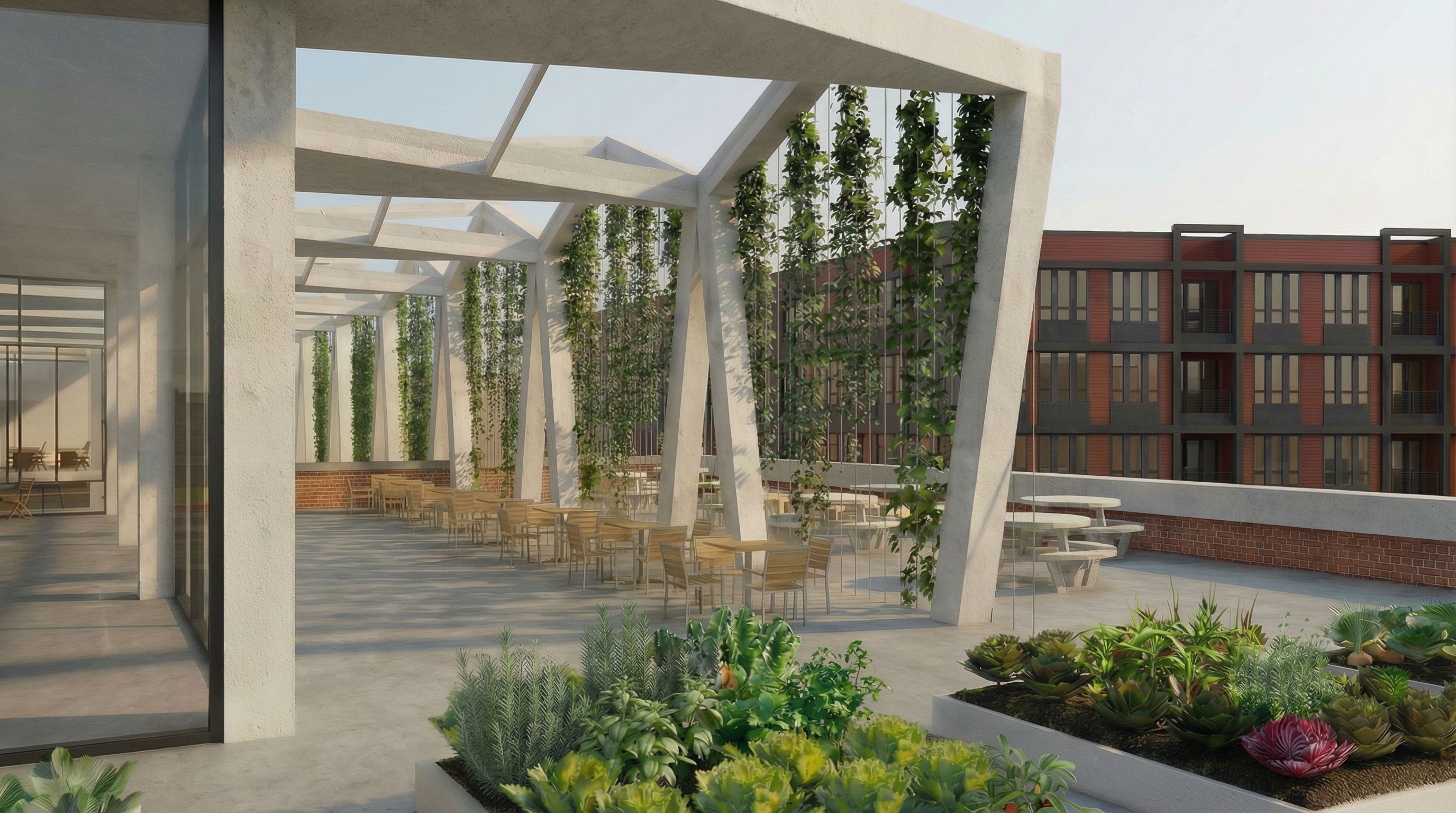 do not change anything except the global haze problem the vines plants furniture concrete and lighting must remain exactly as they are do not stylize soften blur brighten or re render anything fix only this global haze fog removal remove the hazy foggy low contrast overlay that is present in the current image completely restore the original sharp crisp clean enscape style realism from the earlier image reinstate normal contrast normal edge definition and normal material clarity no additional atmospheric effects of any kind no changes to lighting direction color temperature shadows reflections or exposure no smoothing denoising sharpening halos bloom or glow do not alter anything else zero other pixel changes