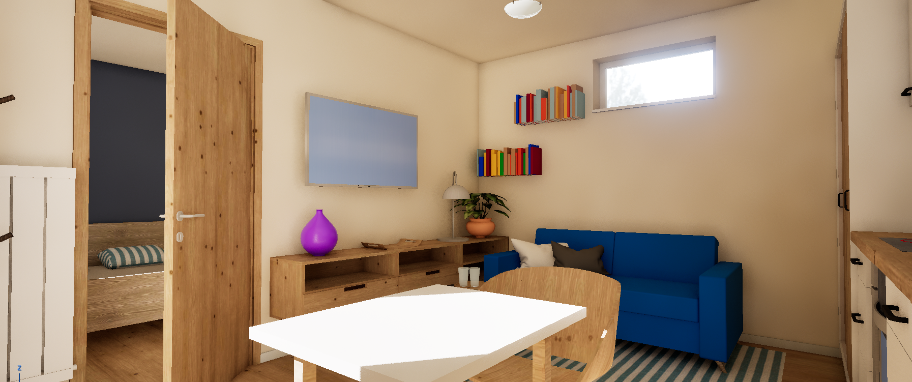 no change in windows and layout modern open living and dining area with a minimalist scandinavian aesthetic features light walnut wood flooring off white walls a sleek gray fabric sofa with accent pillows sits on a high pile cream rug in the foreground a white rectangular dining table with cognac colored leather chairs the space is decorated with a large white textured floor vase containing green branches minimalist line art frames and a slender white adjustable floor lamp bright natural daylight photorealistic 8k interior photography