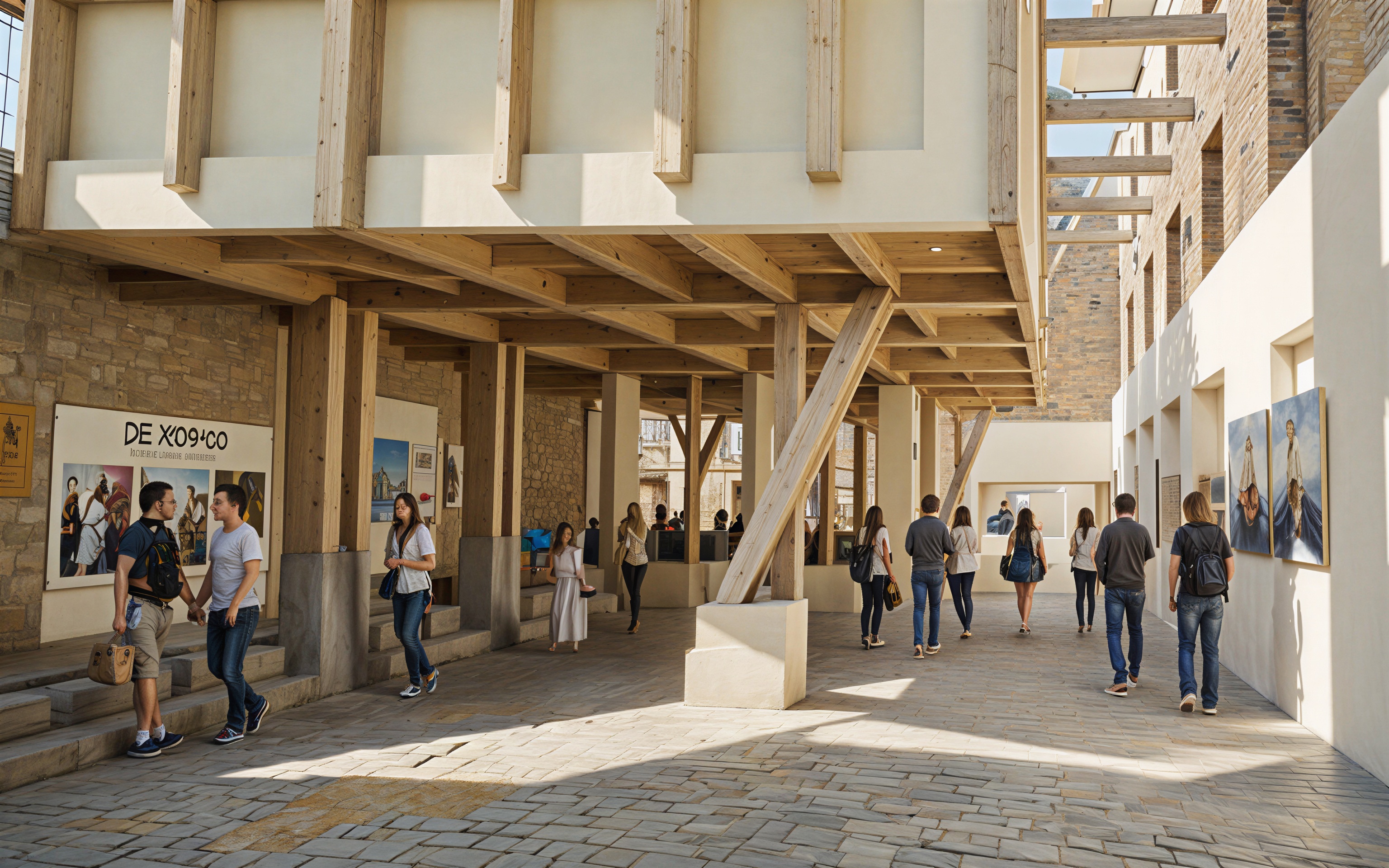 the buiding should have a roof and it is an interior less people polished concrete floor see no faces