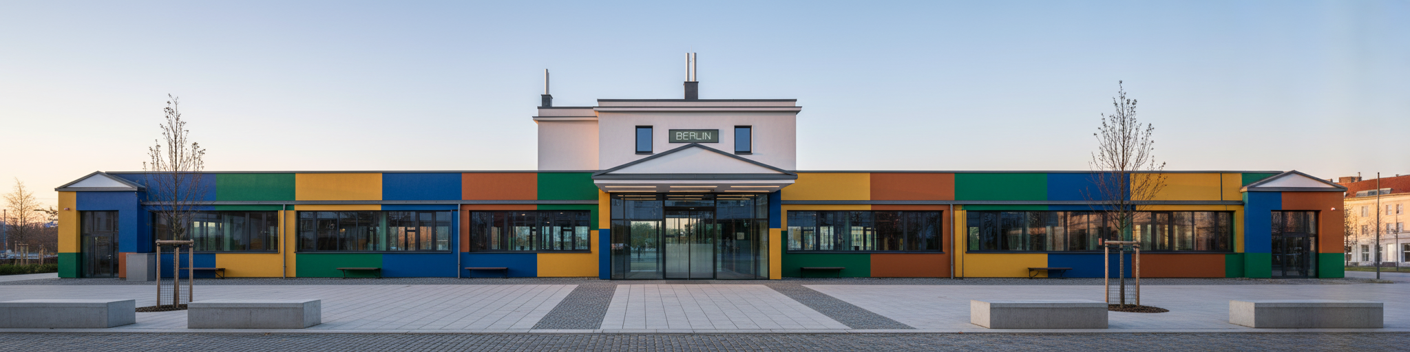 make more realistic add trees in background make public space in front of main building seating for a cafe cafe interior is only within the left three column bays while the right column bay is a recessed exterior entrance to the main building cafe and entrance must be at grade no steps up cafe patio should extend out to sidewalk but not spill onto it cafe should be minimalist like the blue bottle cafe in kyoto with wood paneling maintain proportions of street sidewalk etc this is set on a side street in toronto and should have local vegetation address is 120 westmoreland avenue please use neighbouring houses refer to reference image below for material palette https i pinimg com 1200x 38 9e 3a 389e3a2cb4157a6963811c807a87e14b jpg