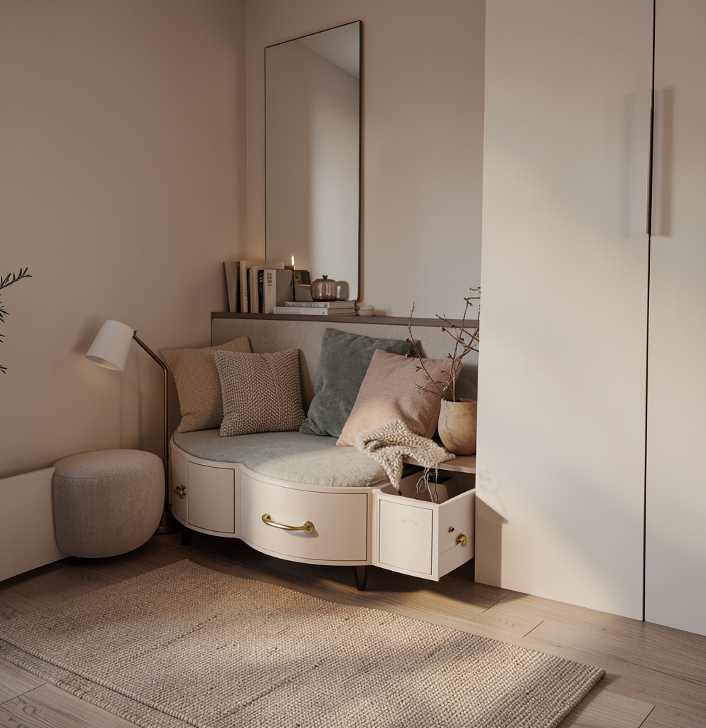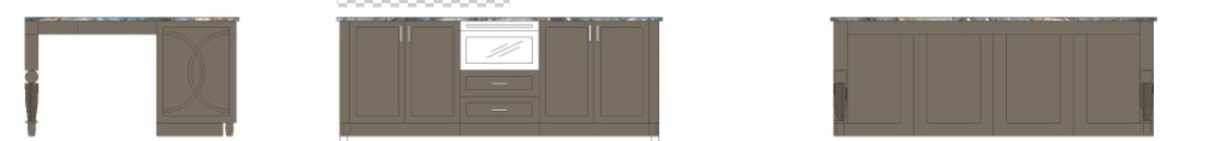 use reference image keep exact cabinet color and design warm taupe painted island cabinetry with inset panels aged brass hardware blue natural stone countertop high movement natural veining polished fluted decorative legs on back of island the countertop will also have a curved over hand about 8 out on the back detailed applied molding on island sides high end traditional kitchen realistic materials soft daylight warm shadows photorealistic render architectural interior