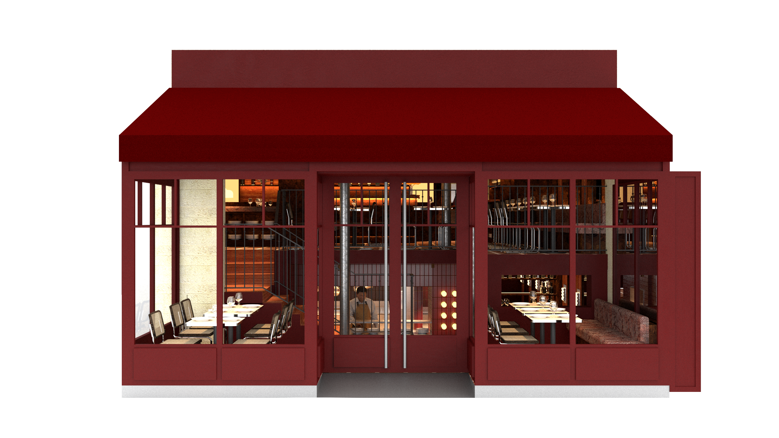 please integrate my 3d model into the provided photograph replace the existing closed terrace area in the photo with my 3d project model ensuring correct perspective lighting proportions and seamless blending with the surrounding architecture maintain the overall ambience and materials of the original photo while accurately showcasing my design in place of the current terrace structure