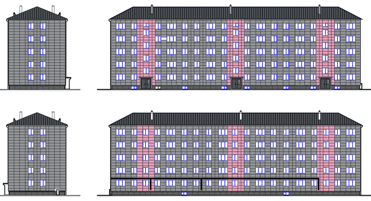 without led lights red and dark gray accent small lights at the bottom a darker shade of gray more pronounced contours for dividing the facades lights in each corner