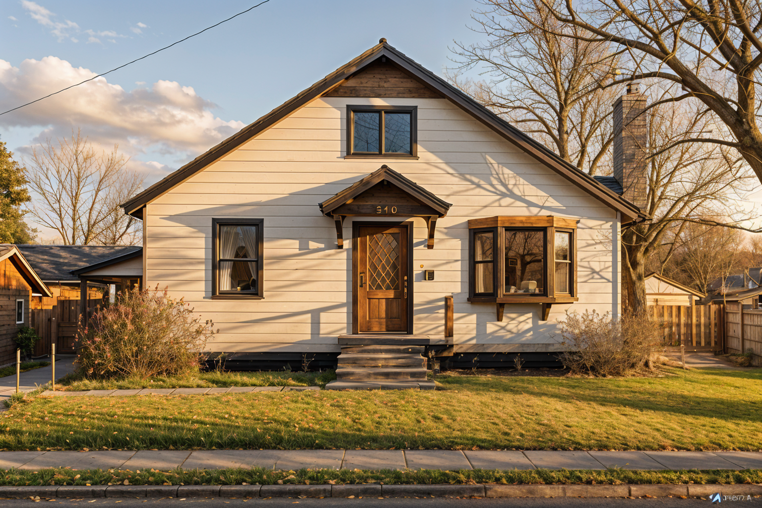 earthy rambler black stucco and tin roof add wrap around porch and garage on the left oversized windows and exagerated front entry stone on the front and brown wood pillars