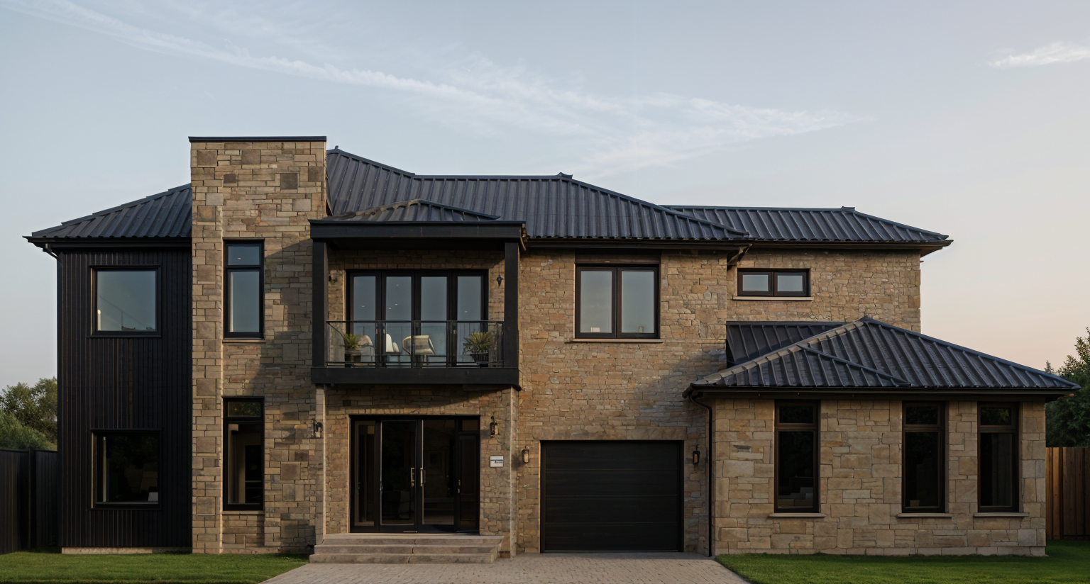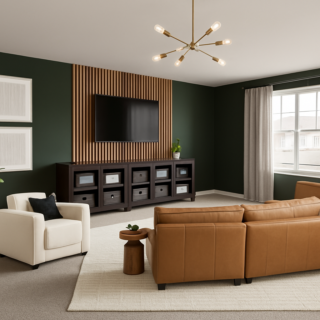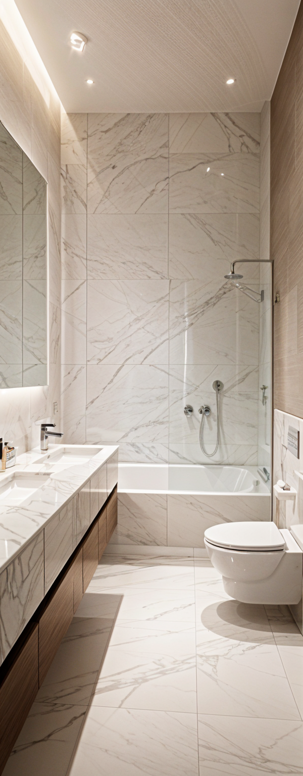 render a cozy and sophisticated bar setting with a modern vintage vibe use a deep navy for the bar cabinetry and shelving contrasted with a soft beige for the walls the countertop should have a bluish marble finish incorporate warm muted antique brass tones for the pendant lights and clock design bar stools with a woven texture and dark wood legs add retro style guinness posters to the walls for a nostalgic touch ensure a rustic wooden shelf holds an eclectic mix of books and vintage decor the atmosphere should feel inviting and stylish with a soft ambient lighting that highlights the textures and colors within the space