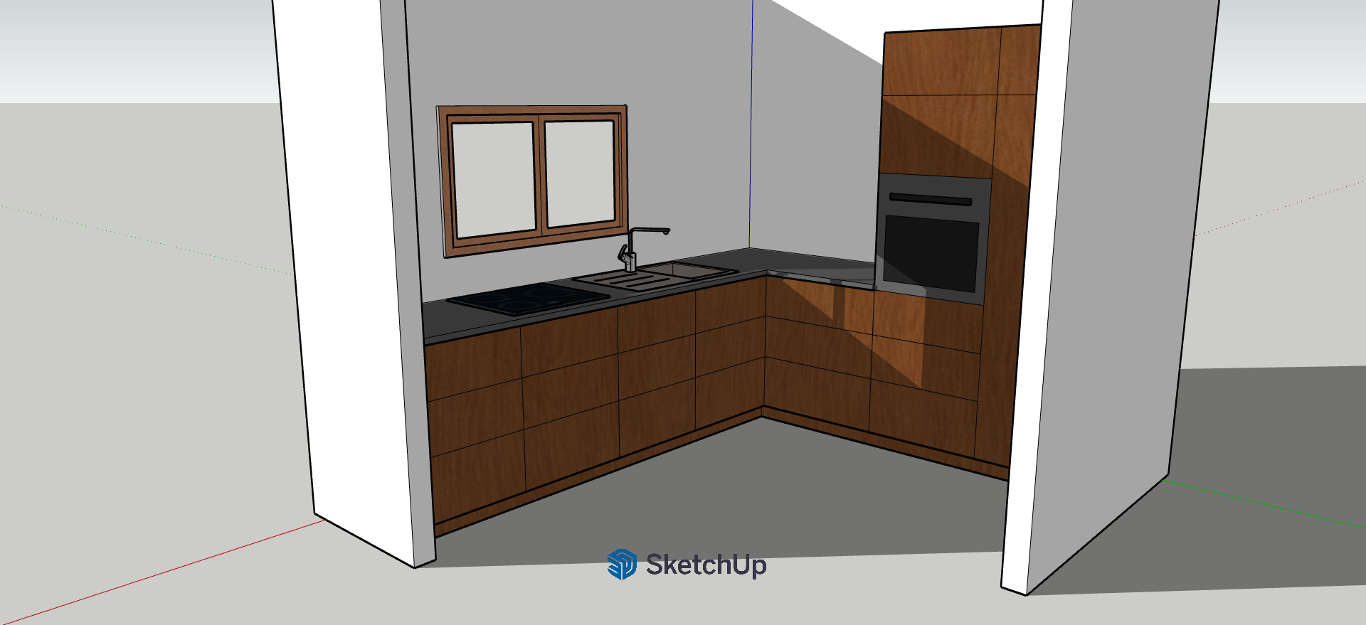use old oak wood on the kitchen and put black handles on the drawers