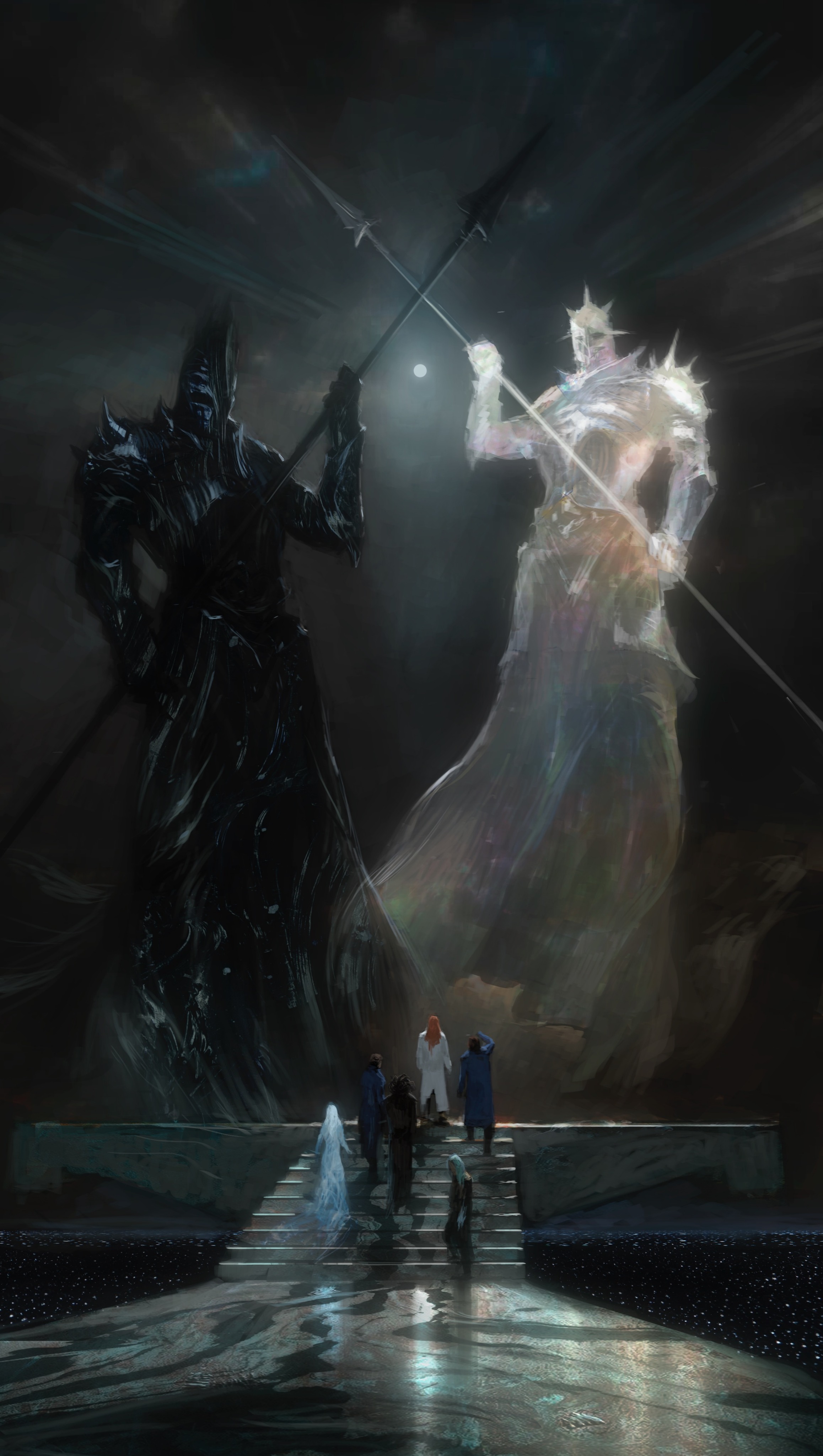 maintain colors the black and white larger figures are ghosts