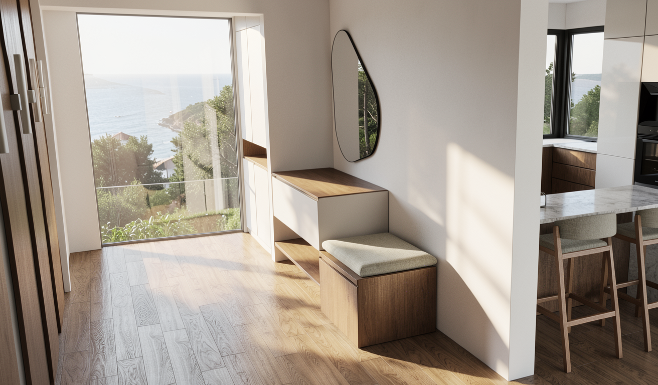 convert this floor plan into a modern isometric 3d view of a full house show the space from an elevated angle with furniture walls and details visible use the same furniture as shows on the plan do not change the orientation of the floorplan