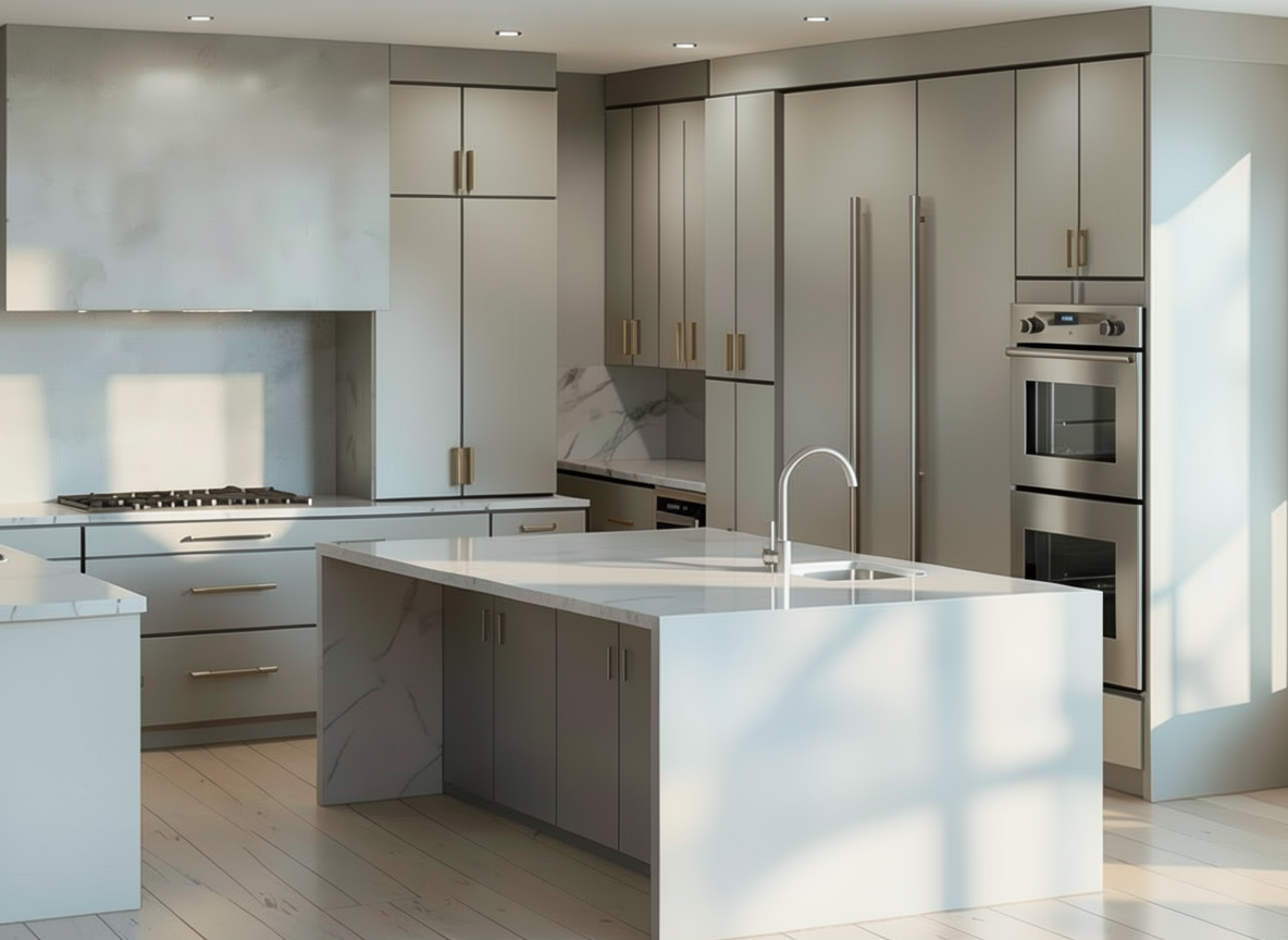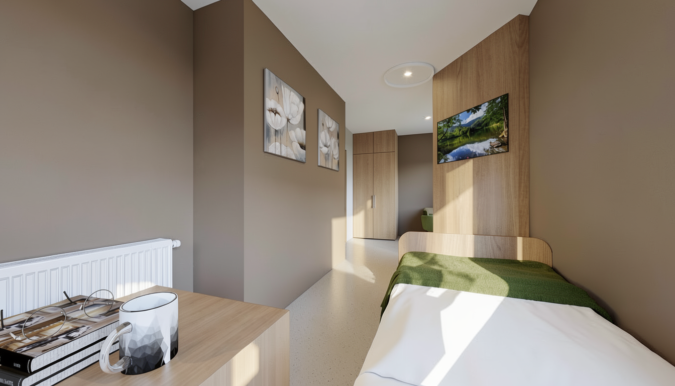 minimalist narrow gallery interior 3 2m wide and 8 5m long very low ceiling at 1 8m height strong axial perspective calm entrance zone in foreground elongated spatial compression central rectangular display table in the middle 140x80 cm surrounded by a few sculptural plinths with flowers arranged as art objects plinths made of galvanized steel panels with large spangle texture subtly reflective combined with exposed solid oak frame structure at edges visible joints and open corners refined tectonic furniture design floor in warm reddish brown polished screed matte finish soft reflection walls smooth and minimal in warm off white tone ceiling very low clean minimal with linear track lighting on both sides directional spotlights highlighting each plinth and floral arrangement lighting soft and atmospheric strong contrast pools of light around objects background slightly dim flowers minimal sculptural ikebana like compositions not commercial bouquets composition calm reduced high end gallery atmosphere no clutter strong negative space cinematic architectural photography ultra realistic soft shadows subtle depth of field shot with 35mm lens slightly off center perspective