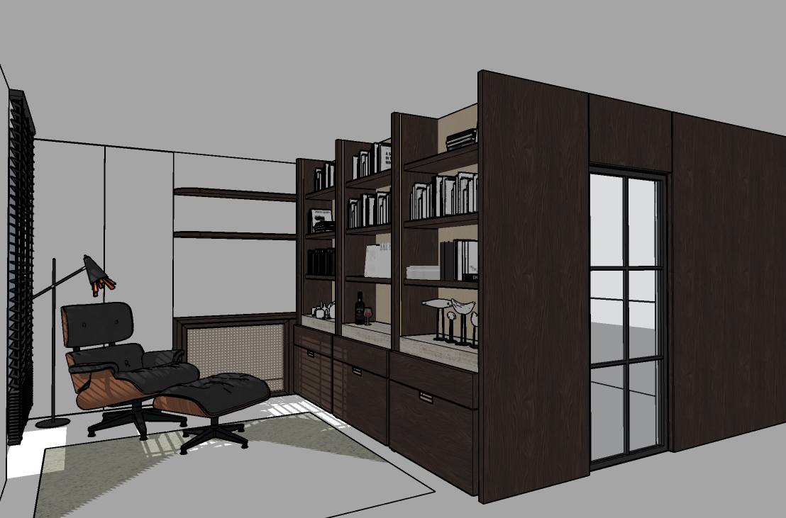 add lighting add wooden floor parquet add ventian plaster white on walls and ceiling wood is walnut brown make it very cosy make it photo realistic