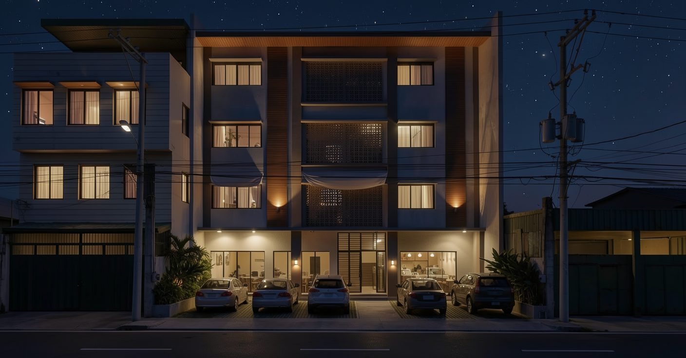 evening lighting in the space add lighting inside the glass cabinets with the wine glasses add lighting on the marble countertop add a wine and cheese platter on the marble countertop add wine bottles inside the two wine refrigerators make the view to the outside through the french doors dark with some lights on from a condo building next door light up the vertical wine racks between the cabinets add a man a playing a game of with a woman next to him waiting to take a shot with balls randomly arranged on the table add two modern pendants lights over the pool table remove the pool that is laying on the table in the source image make the lighting inside the cabinets the same for all of them keep the cabinets white like the source image