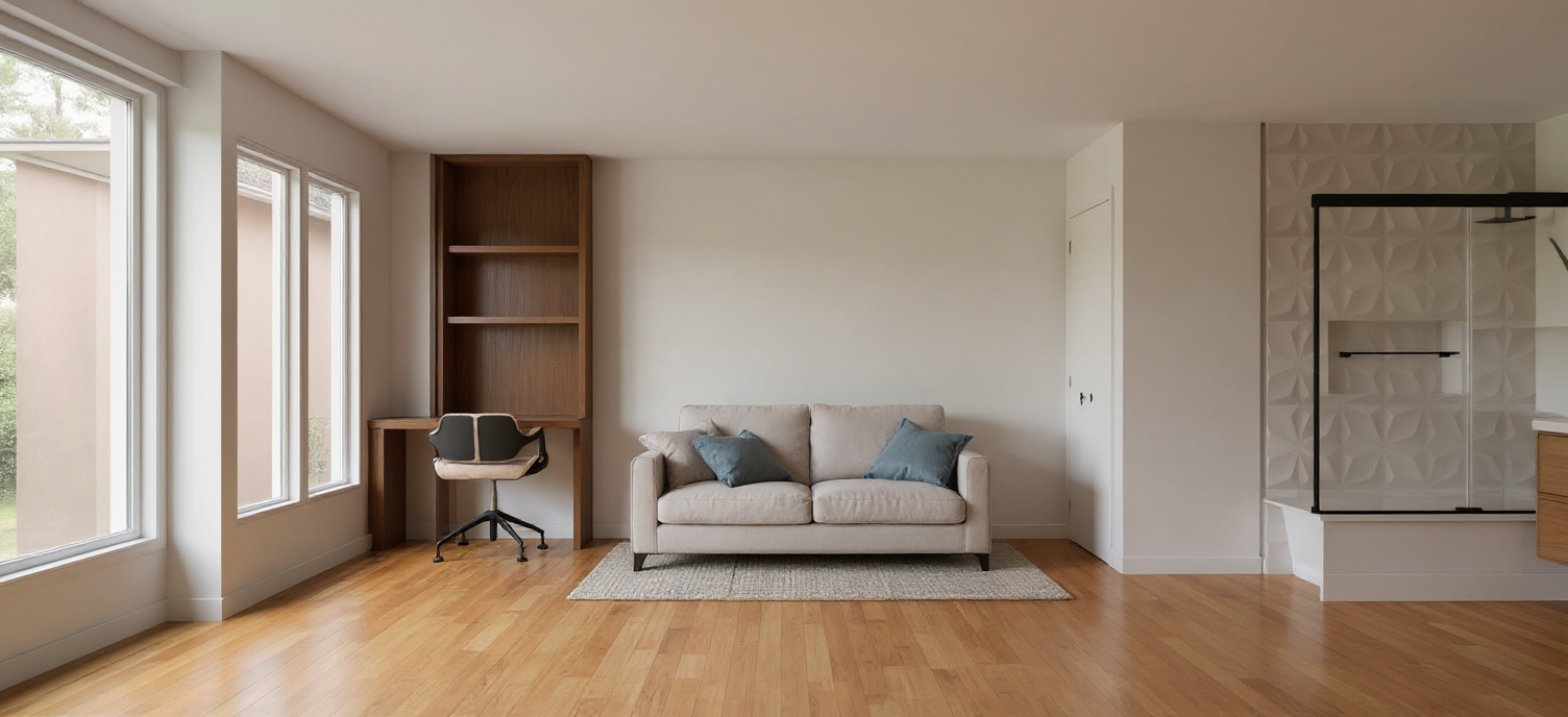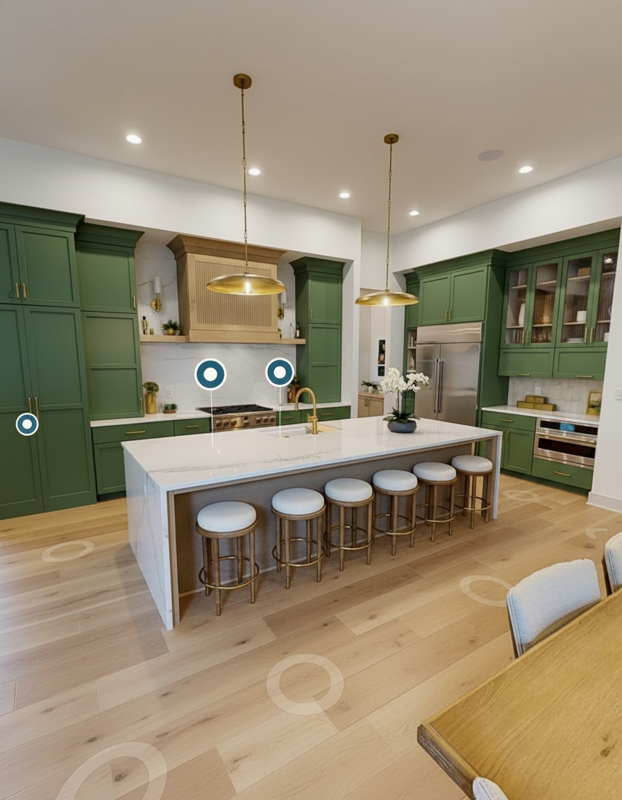 change to waterfall island change the cabinet color to soft white change the floors to white oak