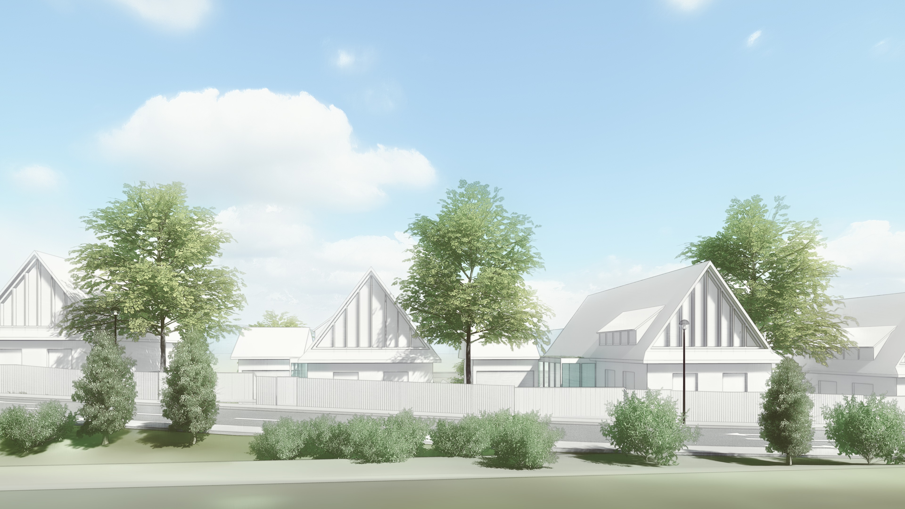 important preserve the existing geometry and the existing context exactly as provided do not modify alter reinterpret add remove scale or reshape any geometry do not change the site surroundings street layout neighboring buildings vegetation or context elements do not modify geometry scale proportions buildings road layout sidewalks or surrounding context in any way do not modify text desaturate the green by 30