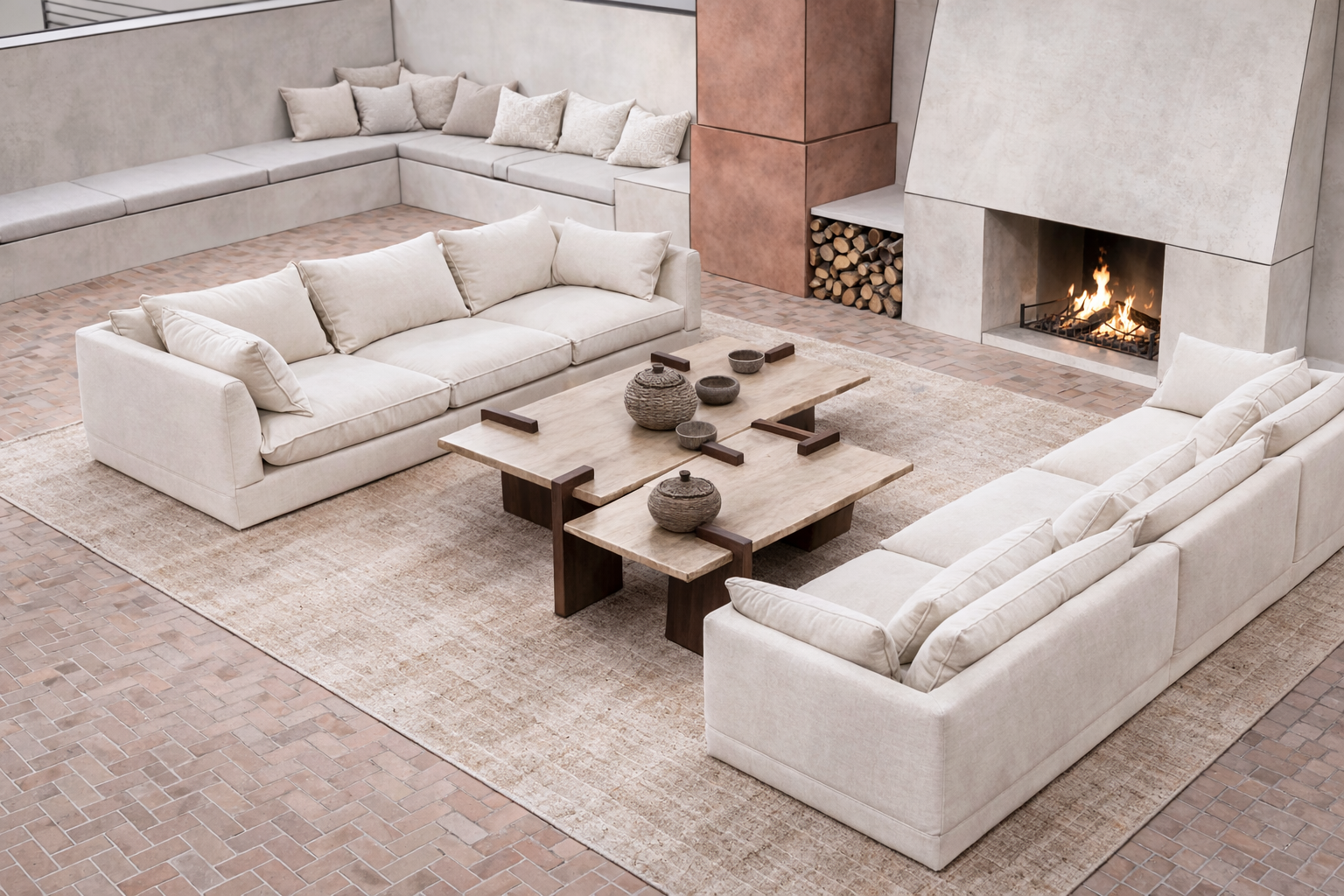 en la zona del banco de obra a ade dos mesas cuadradas bajas de 80 x80 de madera oscura que est n separadas entre si como unos 30 cm