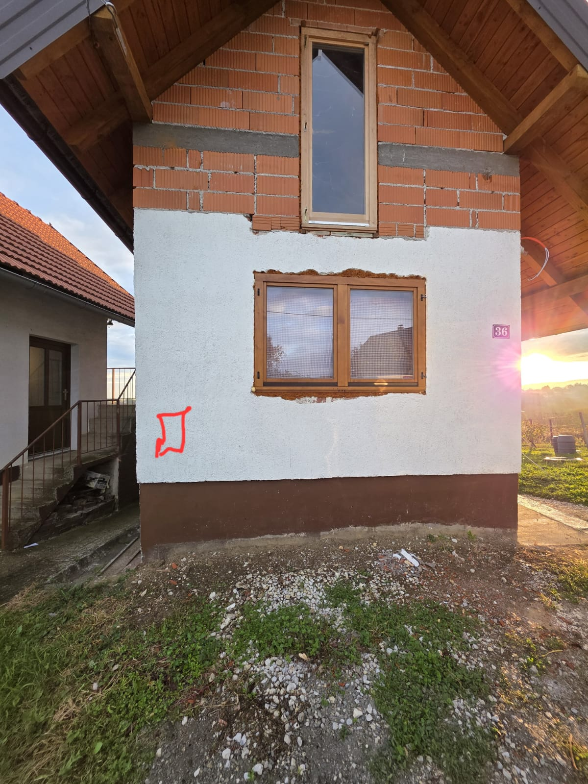 beige facades on upper window add perforated corten panel in a leaf pattern on the right wall