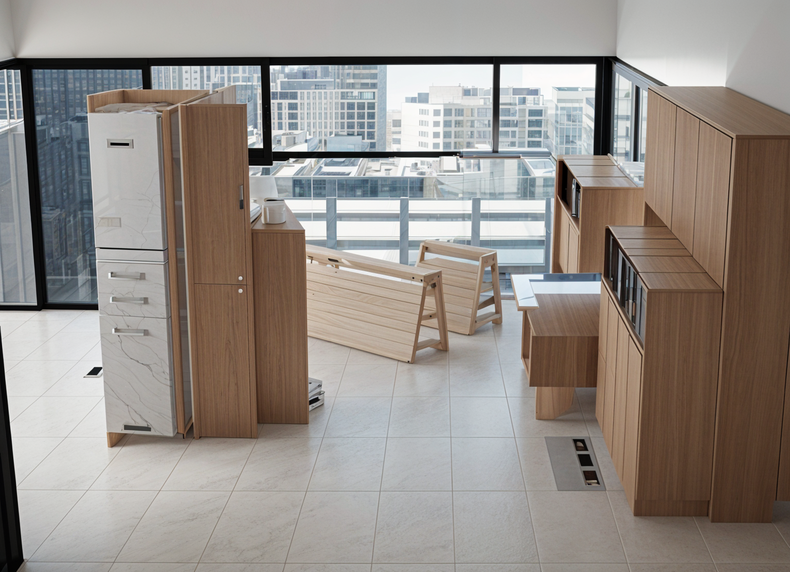 urob z tejto vizualizacie fotku uprav textury svetlo materialy aby to vyzeralo ako fotografia toho priestoru podlaha ostava svetly vinyl ako na obrazku zmen aj priestor a cely dizjan priestoru na dizajnovu modernu predajnu s bytovymi doplnkami ako su vankuse vonne sviecky taniere a podobne pridaj regale a do nich daj tieto bytove doplnky