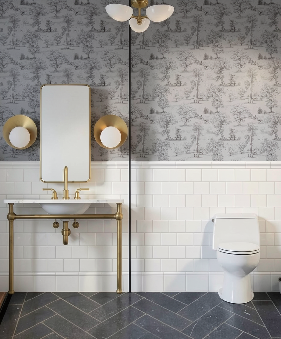light brown siding steps with railing both sides from door down to wooden deck in front of the house with no railing forest type setting