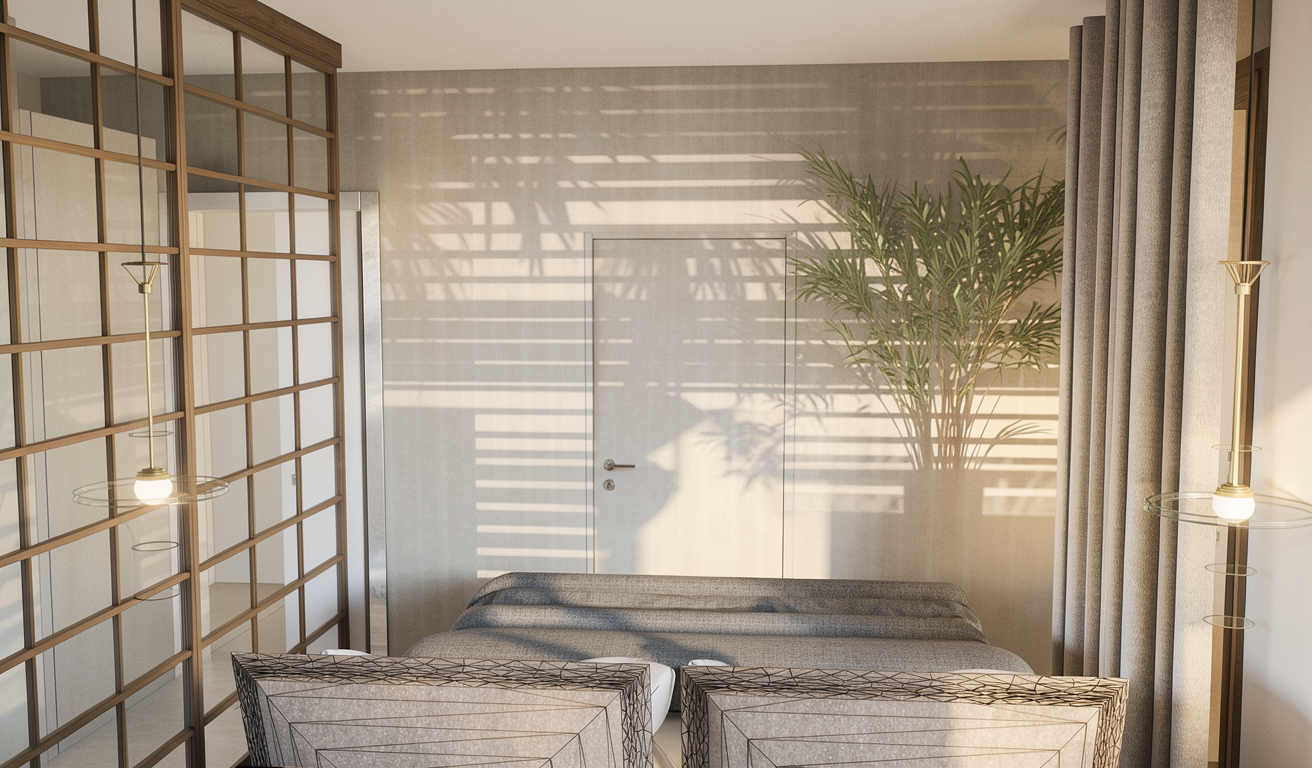 window and light coming from the right side from the side of the chest ceiling is the same beige colour as the walls chest has floted doors