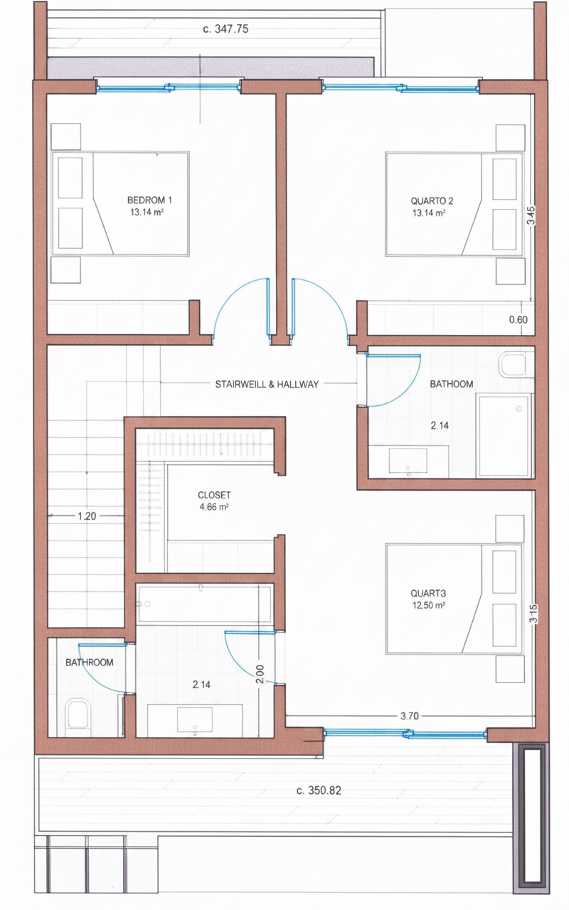 convert this floor plan into a realistic isometric 3d view of a full house show the space from an elevated angle with furniture walls and details visible decore with minimalist modern style also blur the stairs use the same furniture as shows on the plan do not change the orientation of the floorplan