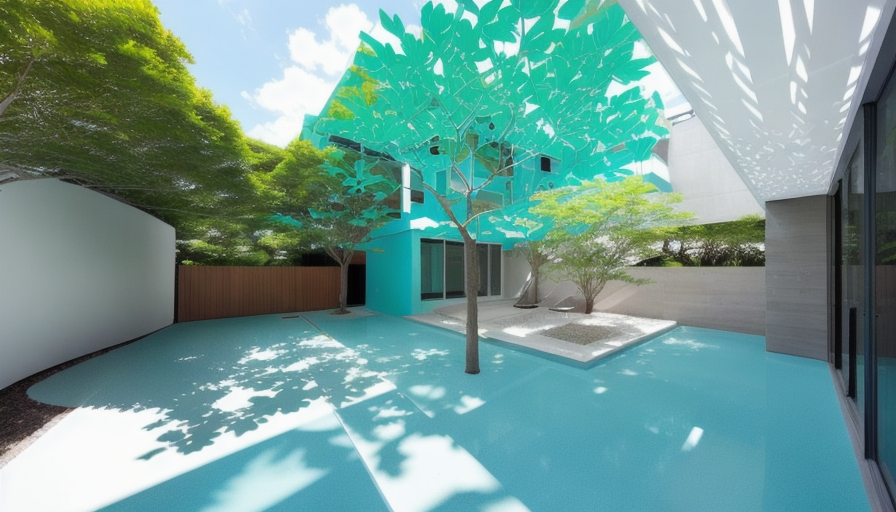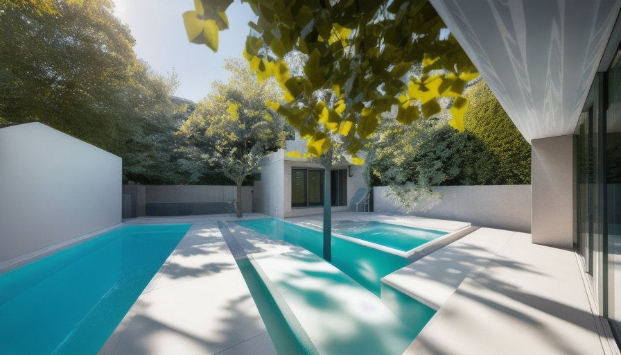 backyard with pool lush green forest back drop with lush tropical plants around pool