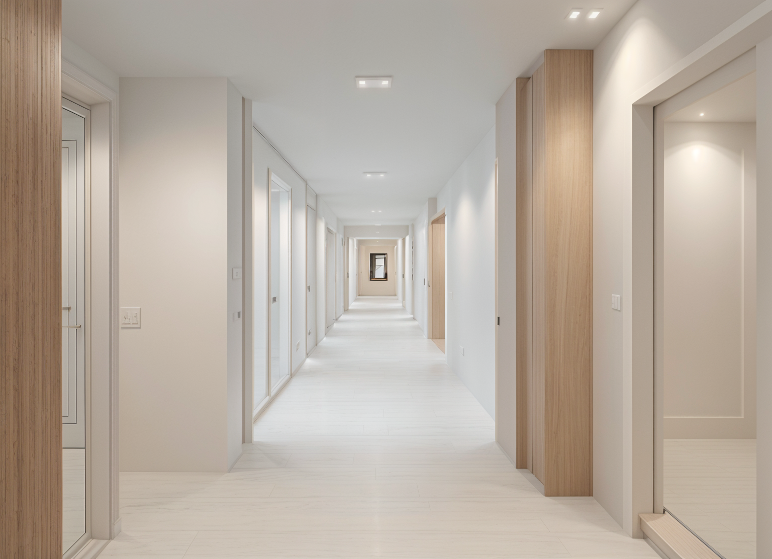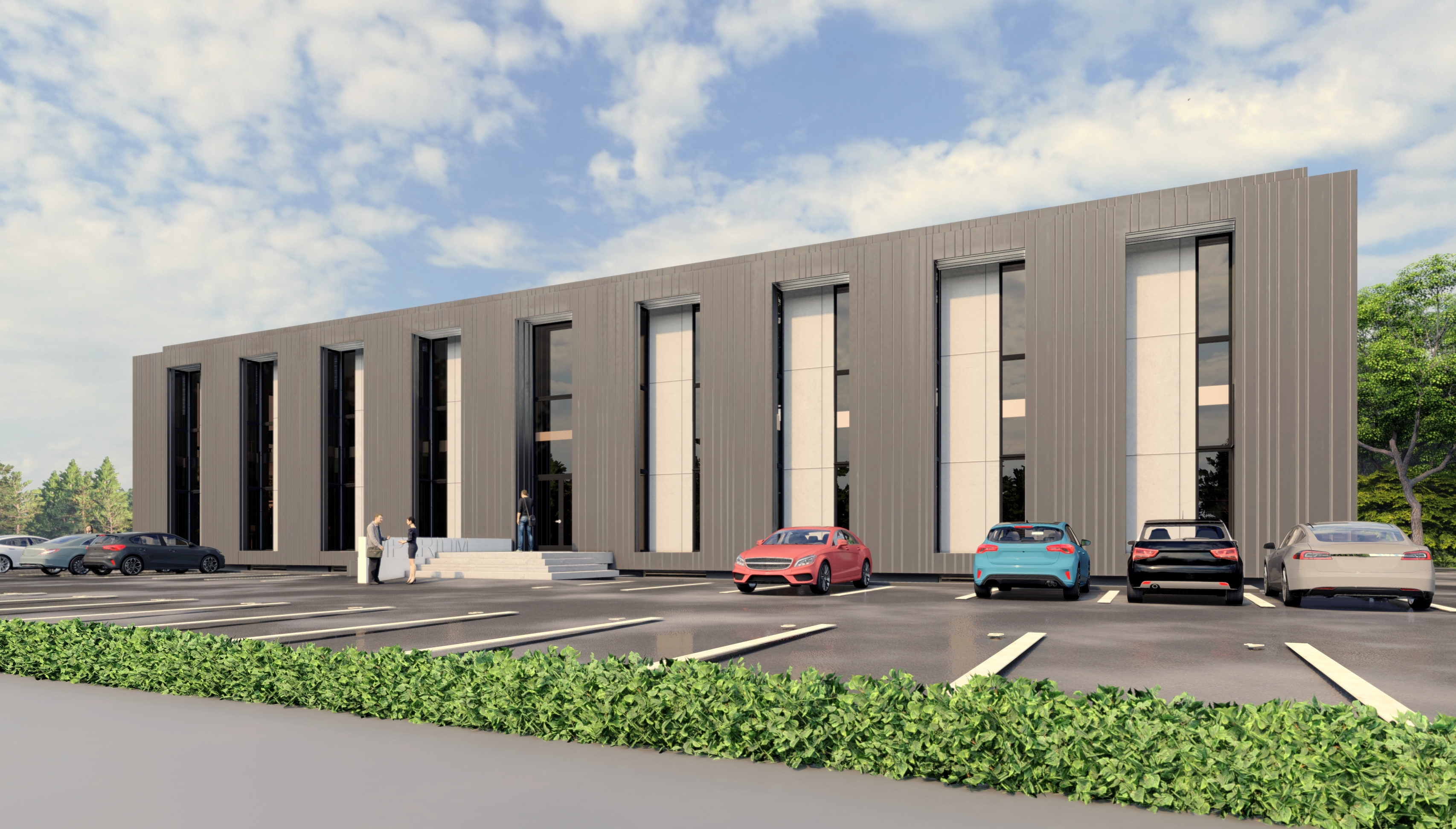sunny day plenty of light glossy facade with vertically folded sheet metal in a random pattern sunlight hits the main facade and creates contrasting shadows the surface of the facade is semi glossy