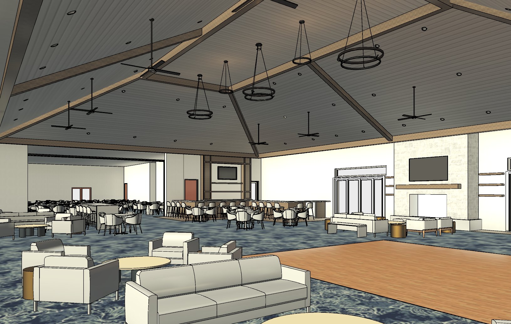 exterior shot make all wood tones a light wood the ceiling white tongue and groove planks