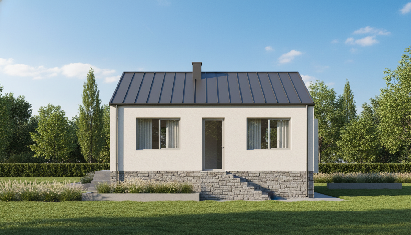 exterior shot metal roof alaska landscape with birch trees natural exterior materials