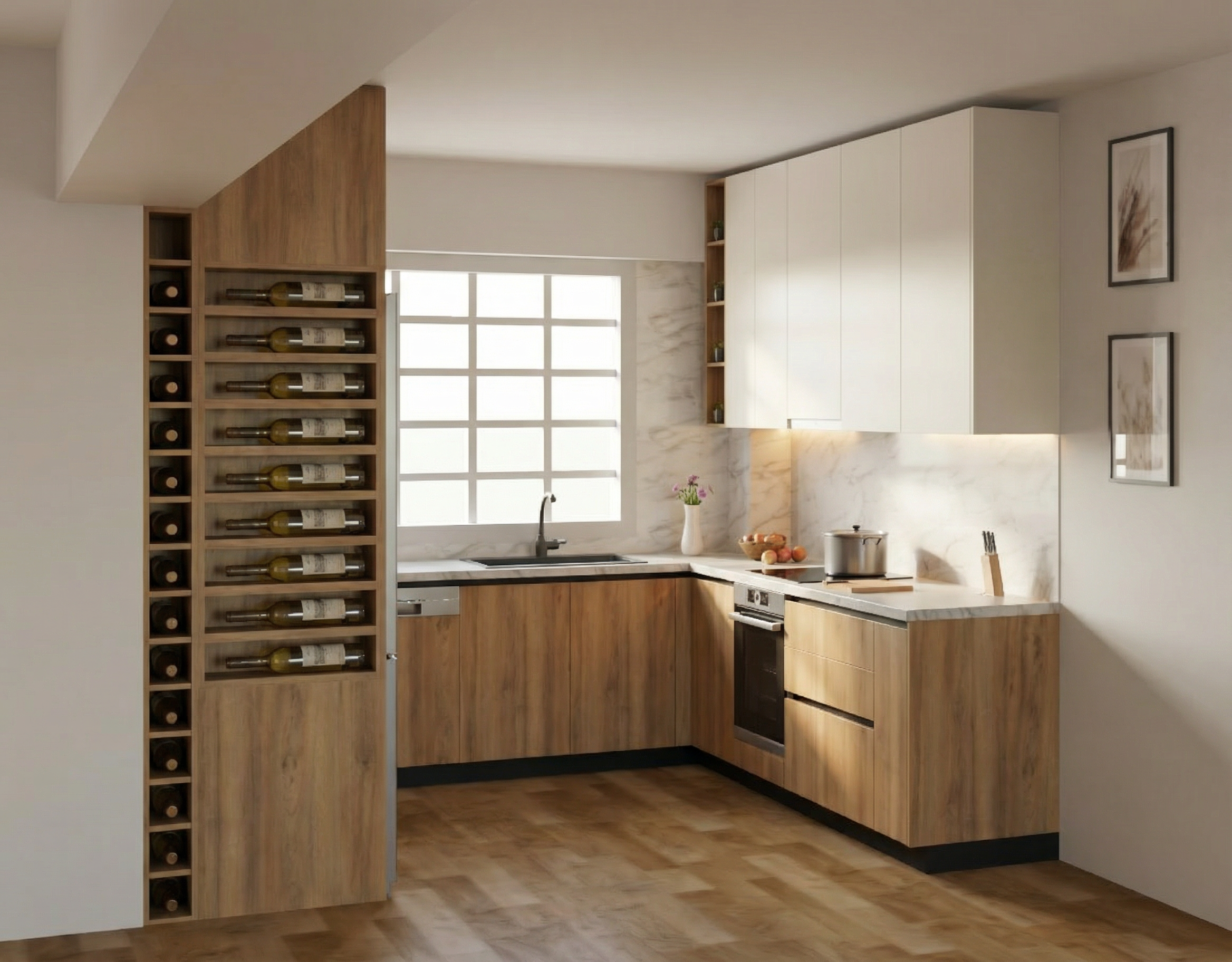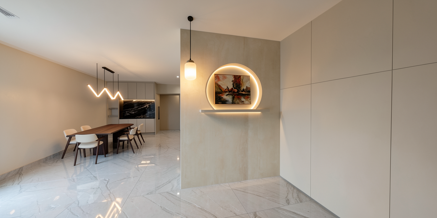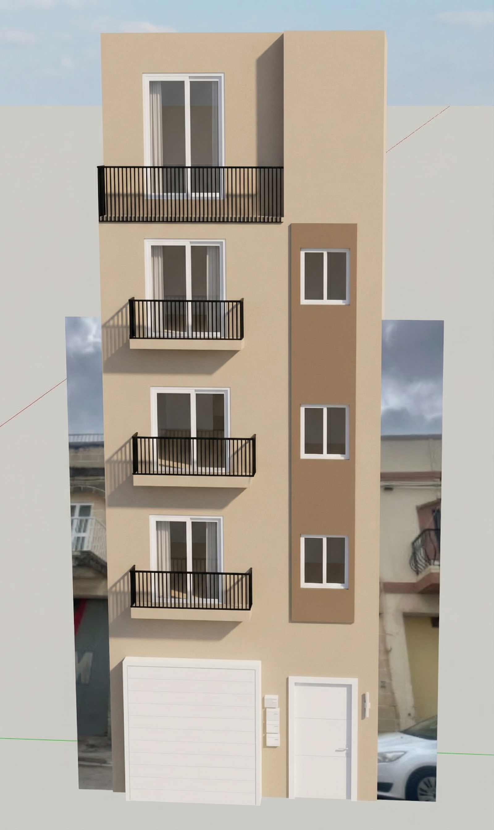 sunny afternoon cream venetian plaster to grey walls sheer curtains to second floor level window only