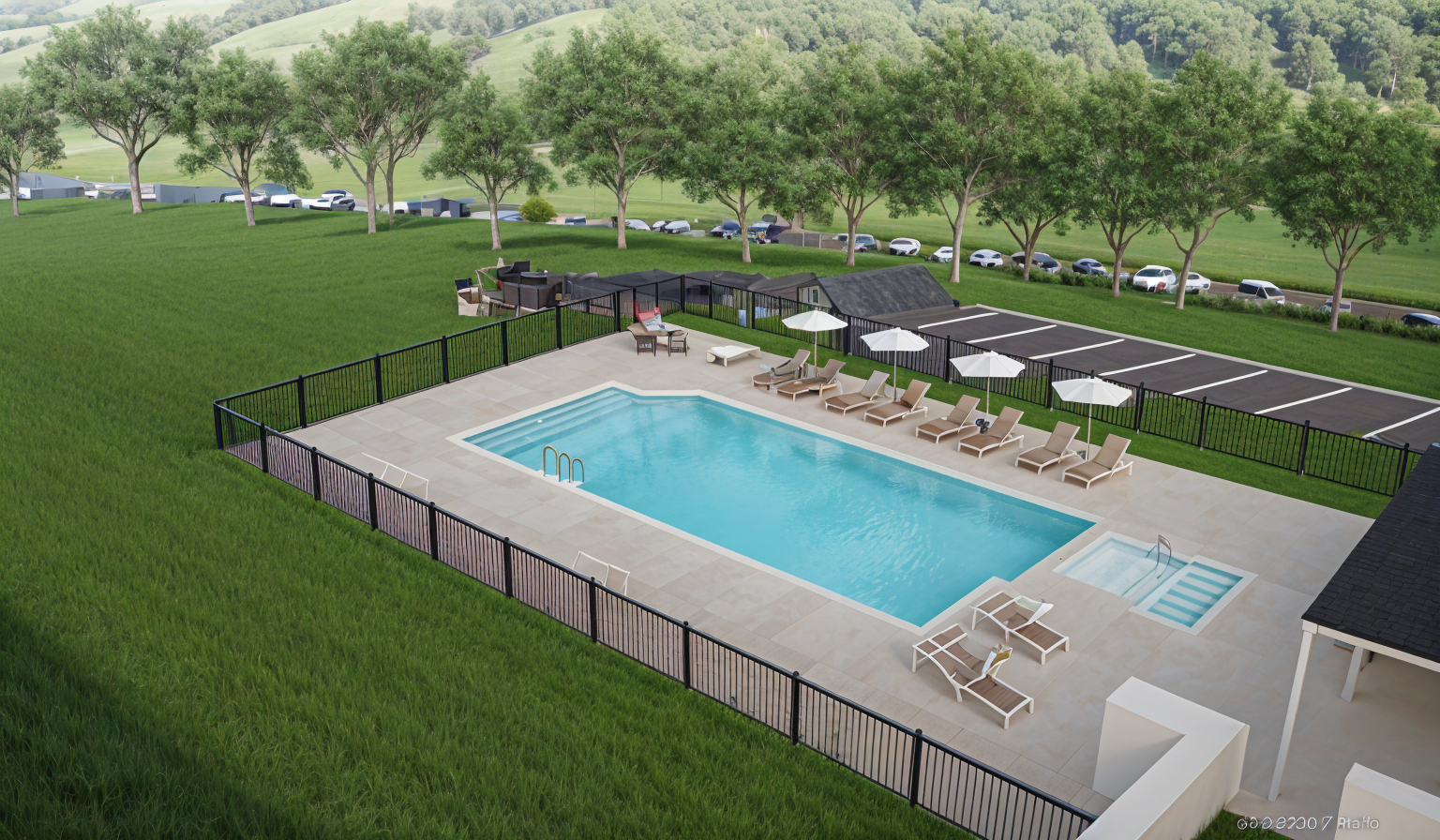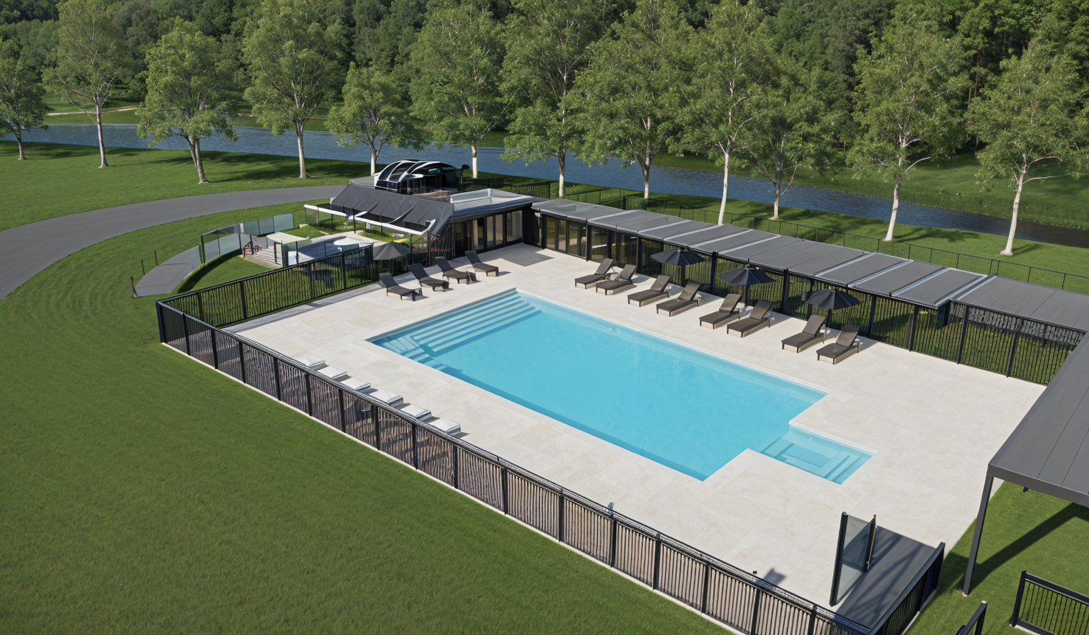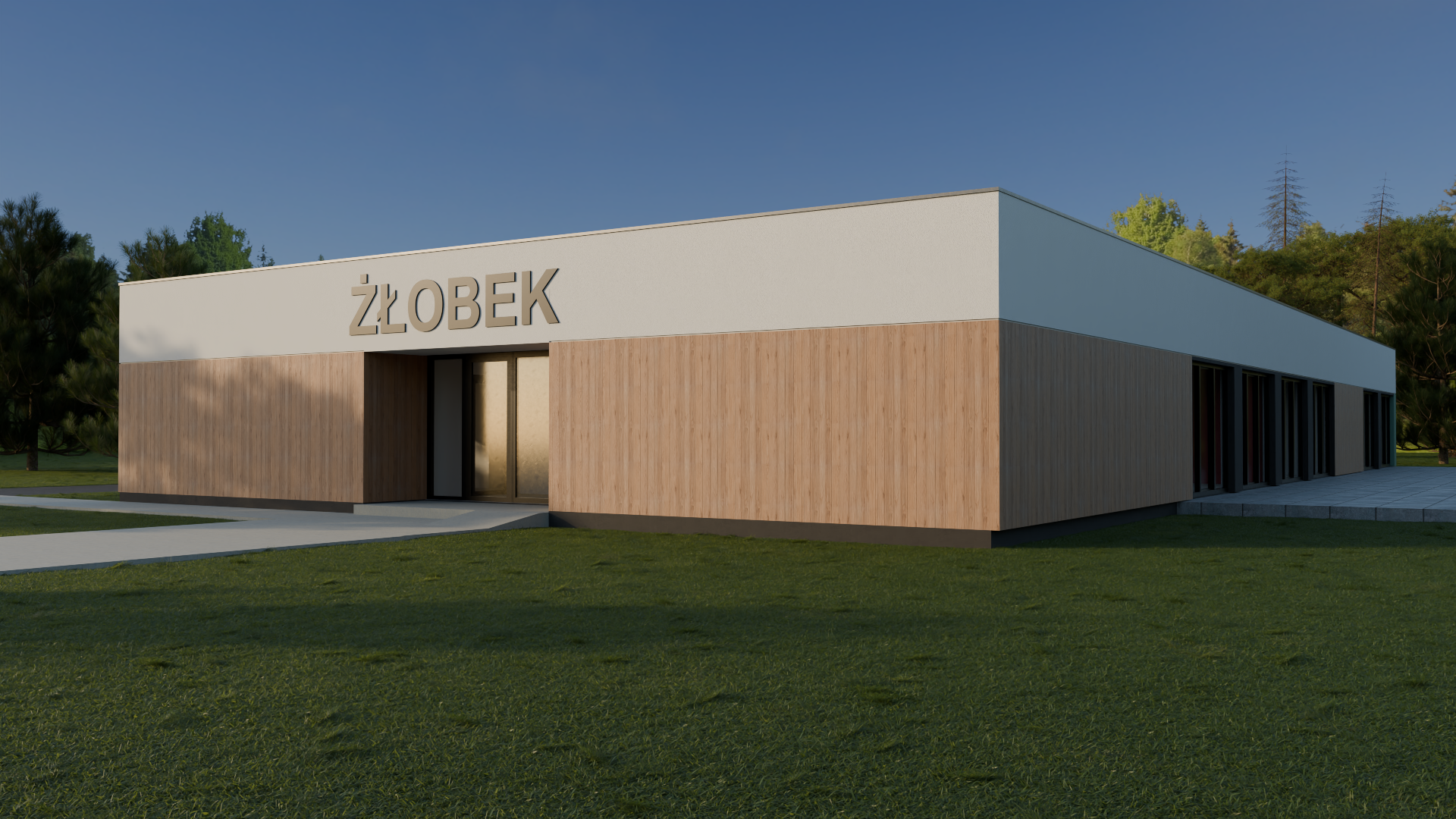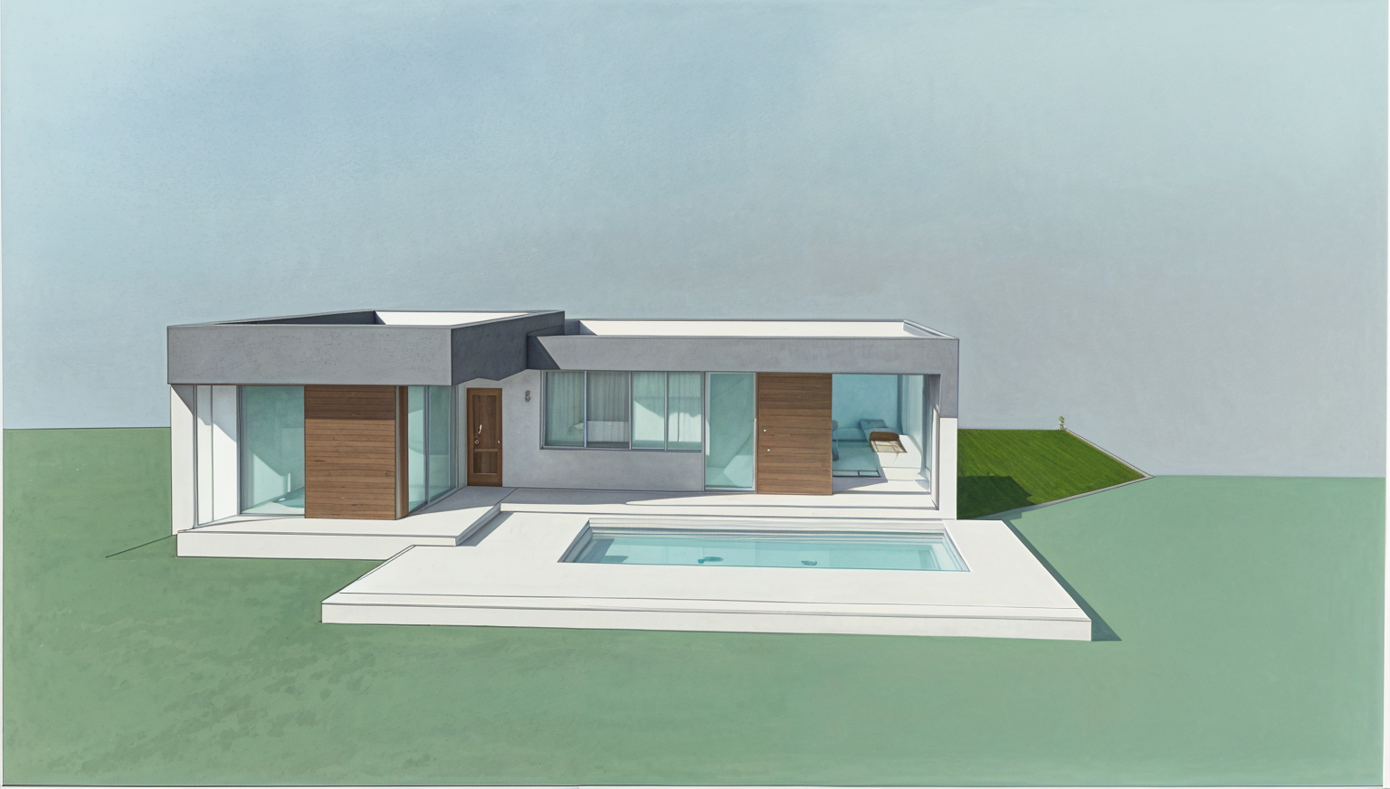 a modern minimalist building with a white upper facade and light wood paneling the grass is lush and green reflecting a serene atmosphere the sky is clear with a deep blue hue suggesting a calm late afternoon setting surrounding trees are rich in varying shades of green enhancing the tranquil and natural ambiance the overall mood is peaceful and welcoming with soft diffused sunlight casting gentle shadows hyperrealistic 8k detailed rendered in octane render