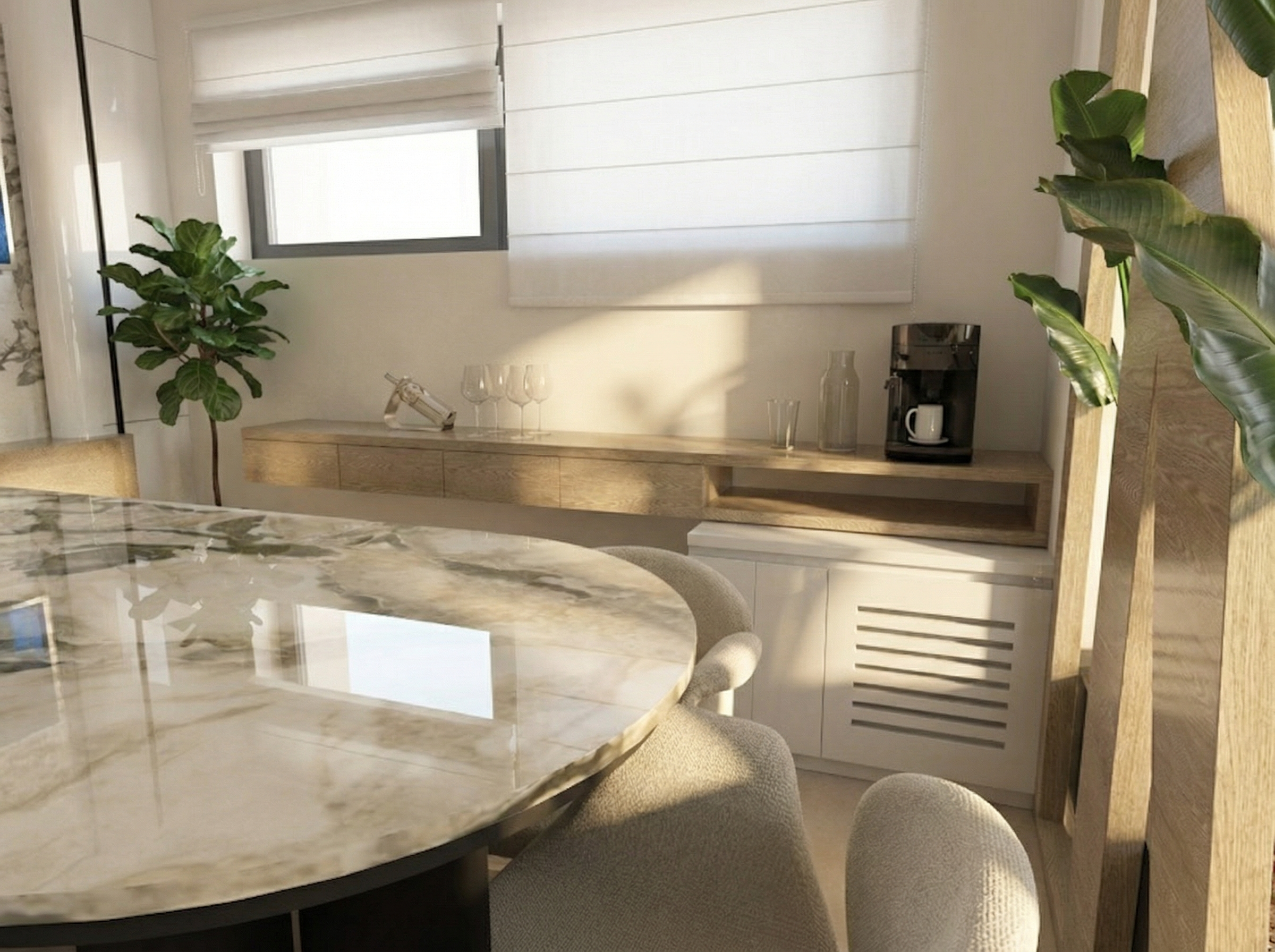 remove the window in place of the window there is a simple long white furniture with horizontal slats