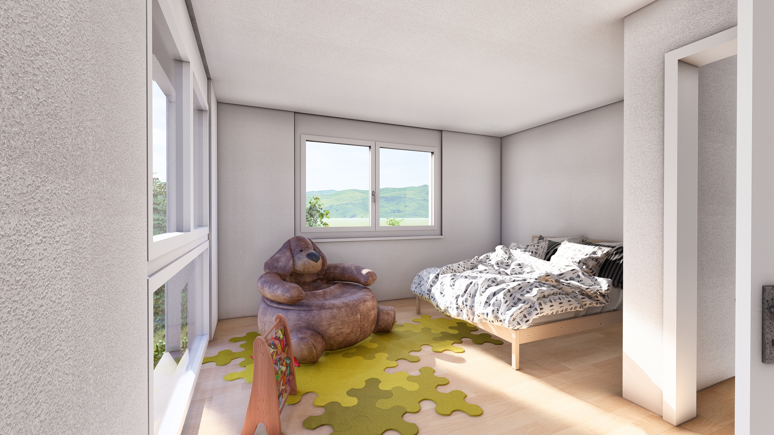 a modern office with bright daylight in front of the window there are curtains