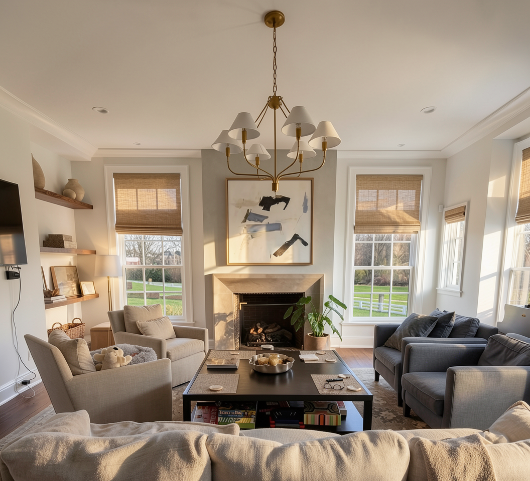 convert this floor plan into a realistic isometric 3d view of a full house show the space from an elevated angle with furniture walls and details visible convert this into a black white iso please note that the windows sills are 3 off the finished floor use the same furniture as shows on the plan do not change the orientation of the floorplan